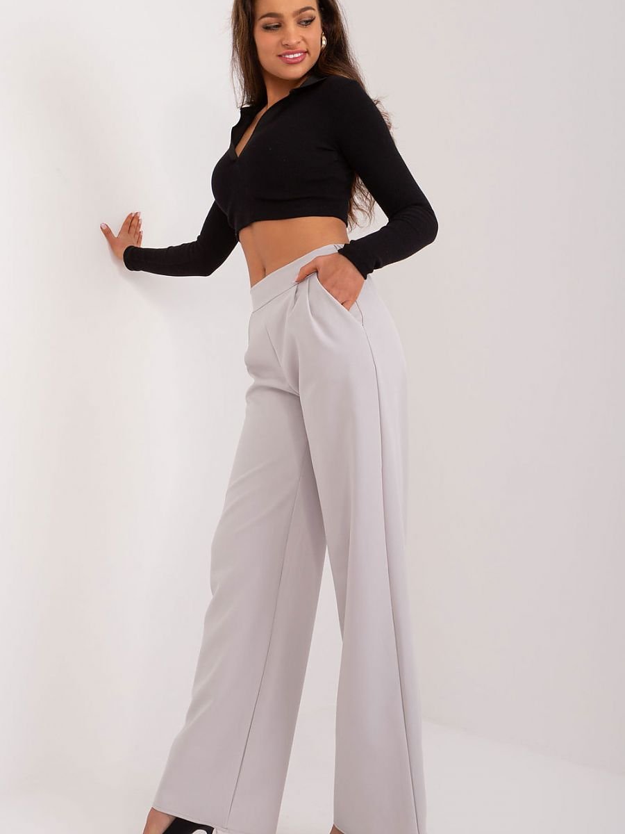 Te eleganckie spodnie są perfekcyjnym wyborem na różnorodne okazje, od pracy po formalne spotkania czy wydarzenia wizytowe. Ich klasyczny design, połączony z wygodą, sprawia, że stanowią doskonałą bazę dla wielu stylizacji. Wykonane z wysokiej jakości poliestru, spodnie gwarantują nie tylko elegancję, ale również komfort noszenia. Gumka umieszczona w tylnej części pasu sprawia, że dopasowują się do sylwetki, zapewniając wygodę przez cały dzień. Dominujący gładki wzór oraz wysoki pas nadają im ponadczasowy charakter, który doskonale komponuje się z różnymi elementami garderoby. Proste nogawki dodają im elegancji i sprawiają, że prezentują się wyjątkowo stylowo. Spodnie te nie posiadają zapięcia, co dodatkowo podkreśla ich minimalistyczny design. Kieszenie boczne wsuwane są praktycznym dodatkiem, umożliwiającym noszenie drobnych przedmiotów. To doskonały wybór dla kobiet ceniących sobie elegancję, komfort i ponadczasowy styl w swojej codziennej garderobie, zwłaszcza w kontekście pracy i okazji biznesowych.