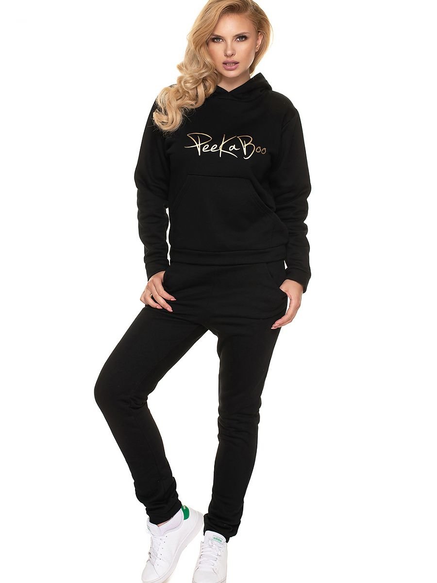 Komplet dresowy z kapturem. Z przodu logo PeeKaBoo. Dres wykonany z mięciutkiego materiału.