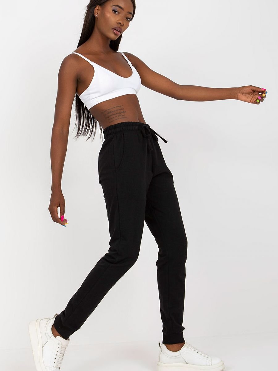 Spodnie dresowe z gumką w pasie, po bokach kieszenie wsuwane. Spodnie z wysokim stanem, w pasie wiązanie.