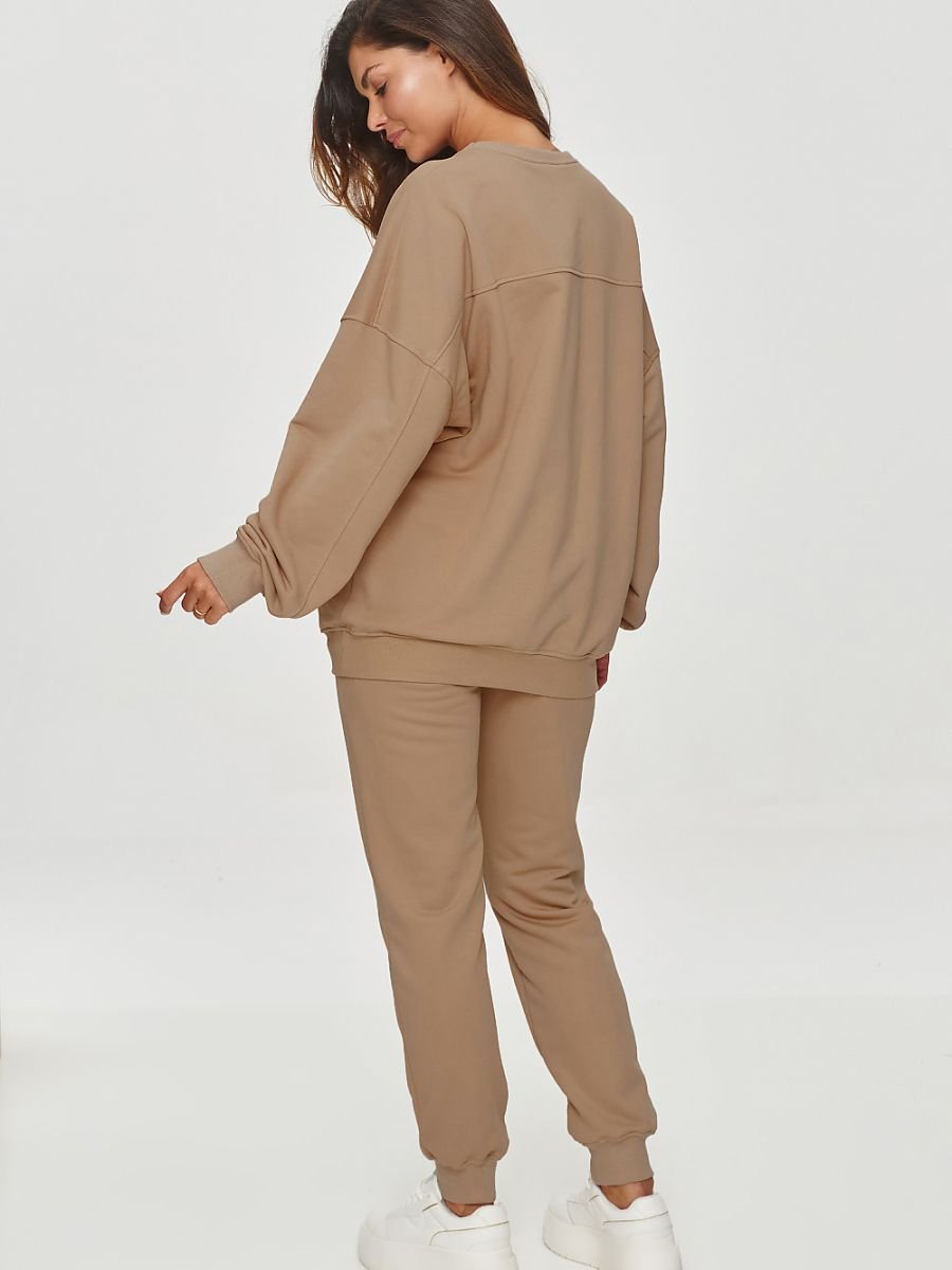 Klasyczne spodnie o prostym kroju wykonane z miękkiego materiału dresowego. W talii mają elastyczny pas z szeroką gumką co zapewnia wygodne dopasowanie a boczne kieszenie funkcjonalność. Nogawki spodni zwężają się ku dołowi i kończą się ściągaczami przy kostkach dając możliwość regulowania ich długości. Fason spodni jest luźny co podkreśla ich praktyczność i komfort podczas noszenia. Materiał jest przyjemny w dotyku co doskonale sprawdzi się zarówno podczas uprawiania sportu jak i w czasie codziennych aktywności. W połączeniu z bluzą lub t-shirtem pozwoli stworzyć wygodny, casualowy zestaw.