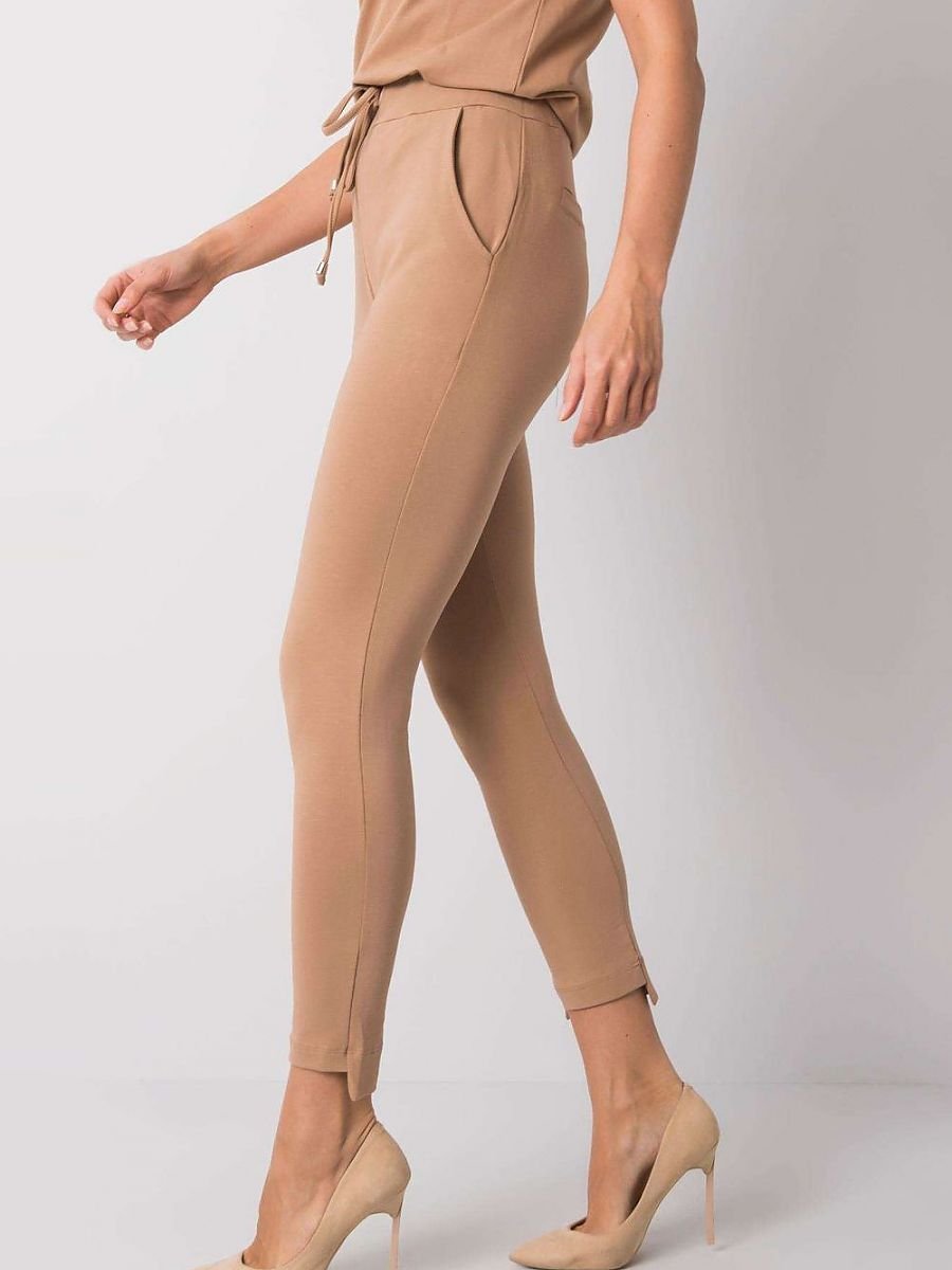 Spodnie dresowe z wiązaniem w pasie oraz zwężanymi nogawkami. Po bokach kieszenie wsuwane.