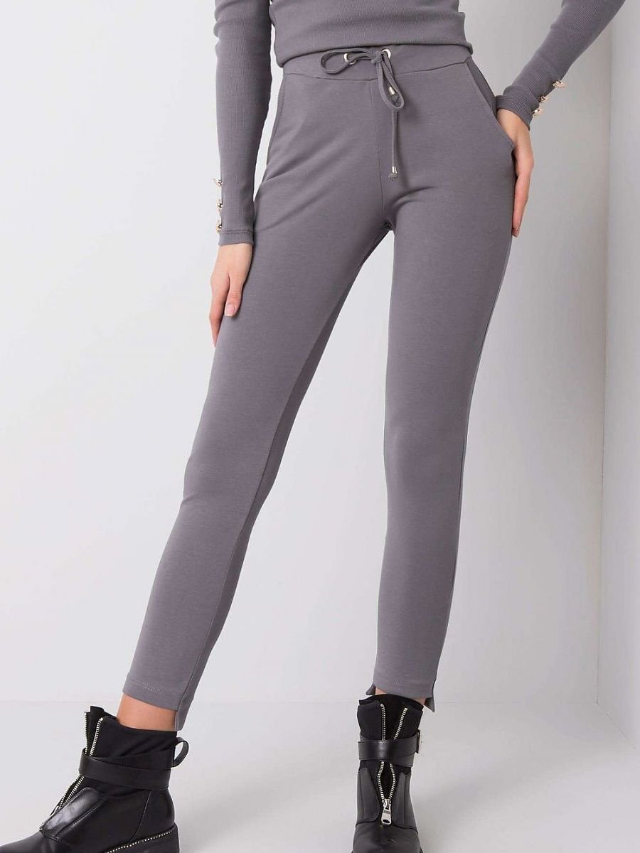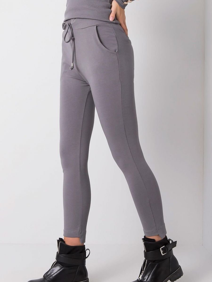 Spodnie dresowe z wiązaniem w pasie oraz zwężanymi nogawkami. Po bokach kieszenie wsuwane.