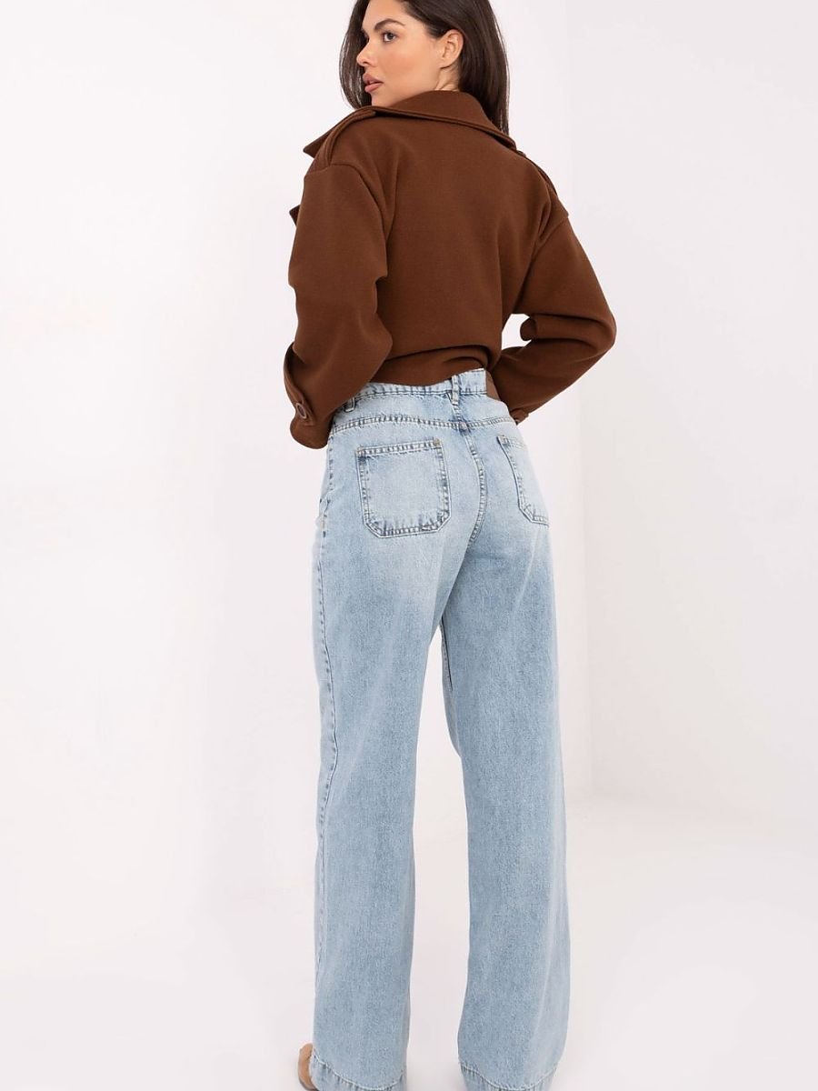 Jeansy damskie wide leg uszyte z bawełny to idealny wybór na co dzień w casualowym stylu. Gładki materiał i klasyczny denimowy charakter sprawiają, że łatwo je zestawić z ulubionymi basicami i modnymi dodatkami. Wysoki stan podkreśla talię i zapewnia komfort noszenia, a szerokie nogawki nadają sylwetce lekkości i nowoczesnego wyrazu. Model zapinany na zamek i guzik, wyposażony w praktyczne, otwarte kieszenie zarówno z przodu, jak i z tyłu.