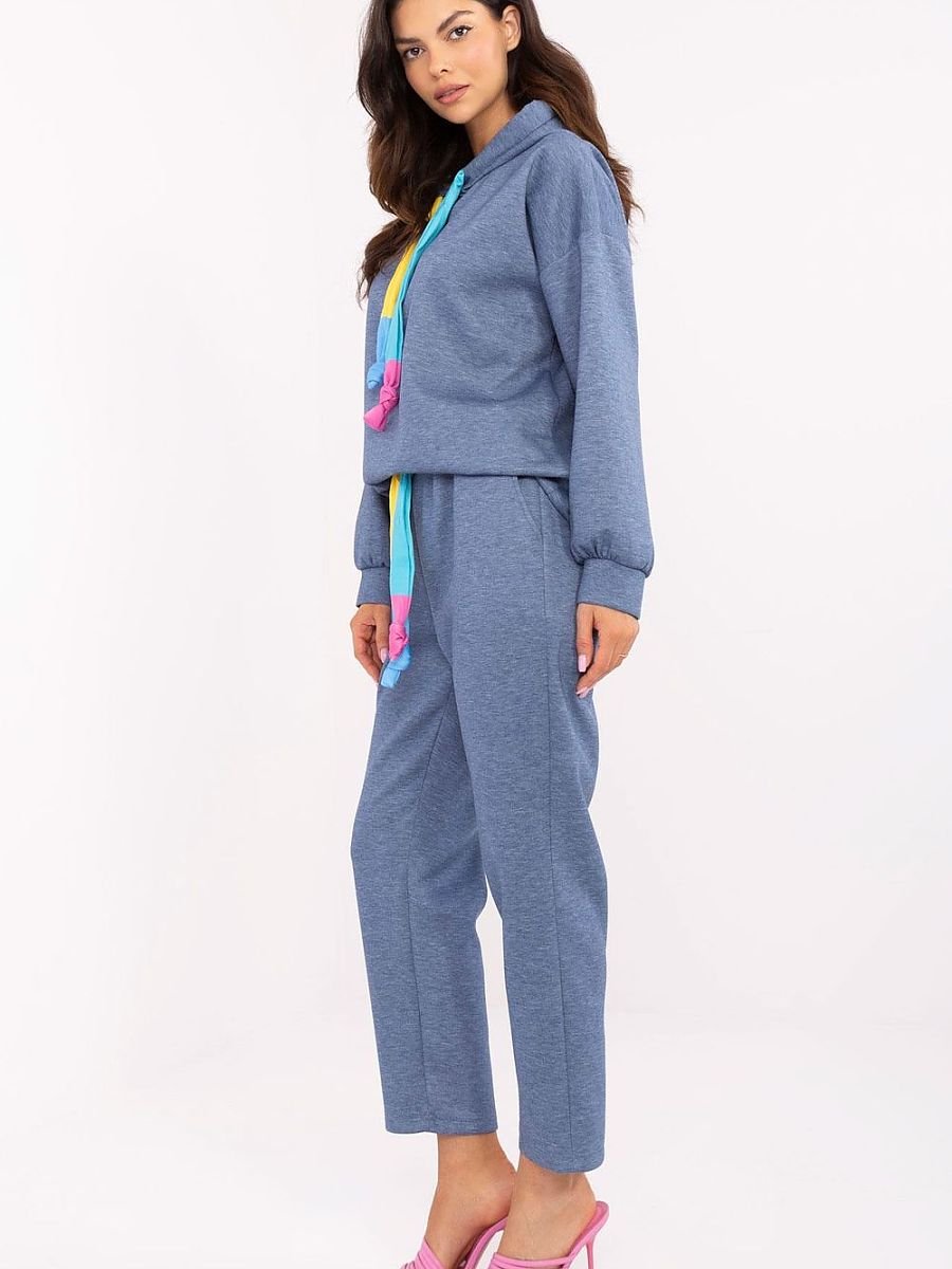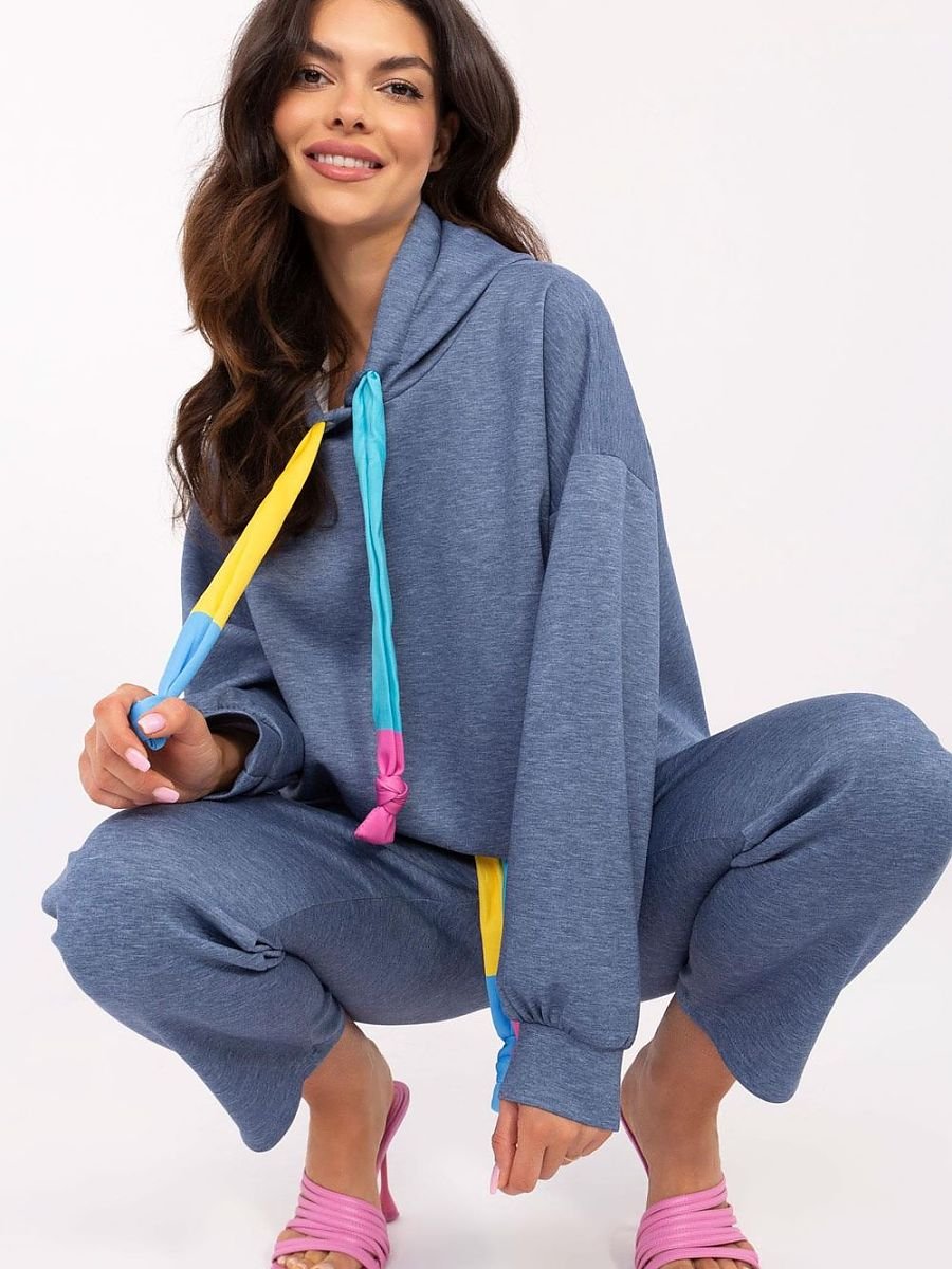Komplet dresowy w stylu casual to idealny wybór na co dzień, łączący wygodę i modny wygląd. Wykonany z wysokiej jakości mieszanki poliestru, wiskozy i elastanu, zapewnia komfort noszenia oraz swobodę ruchów. Bluza z długim rękawem posiada praktyczny kaptur z troczkami do regulacji, co dodaje sportowego charakteru. Spodnie o prostym kroju i długich nogawkach mają wysoki stan oraz wsuwane boczne kieszenie, a dodatkowy troczek w pasie pozwala na idealne dopasowanie. Melanżowy szary wzór sprawia, że komplet jest uniwersalny i świetnie komponuje się z różnymi dodatkami. To doskonała opcja na codzienne stylizacje zarówno na spacer, zakupy, jak i relaks w domowym zaciszu.