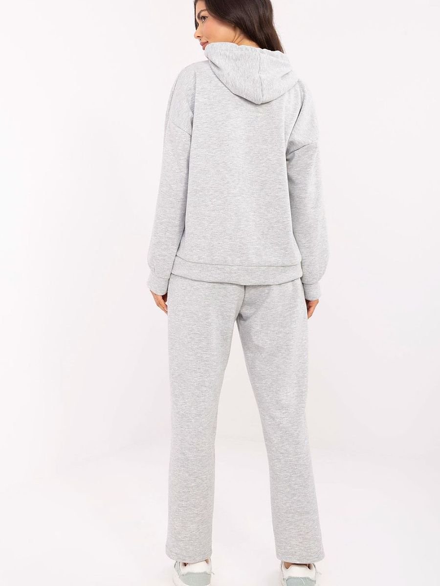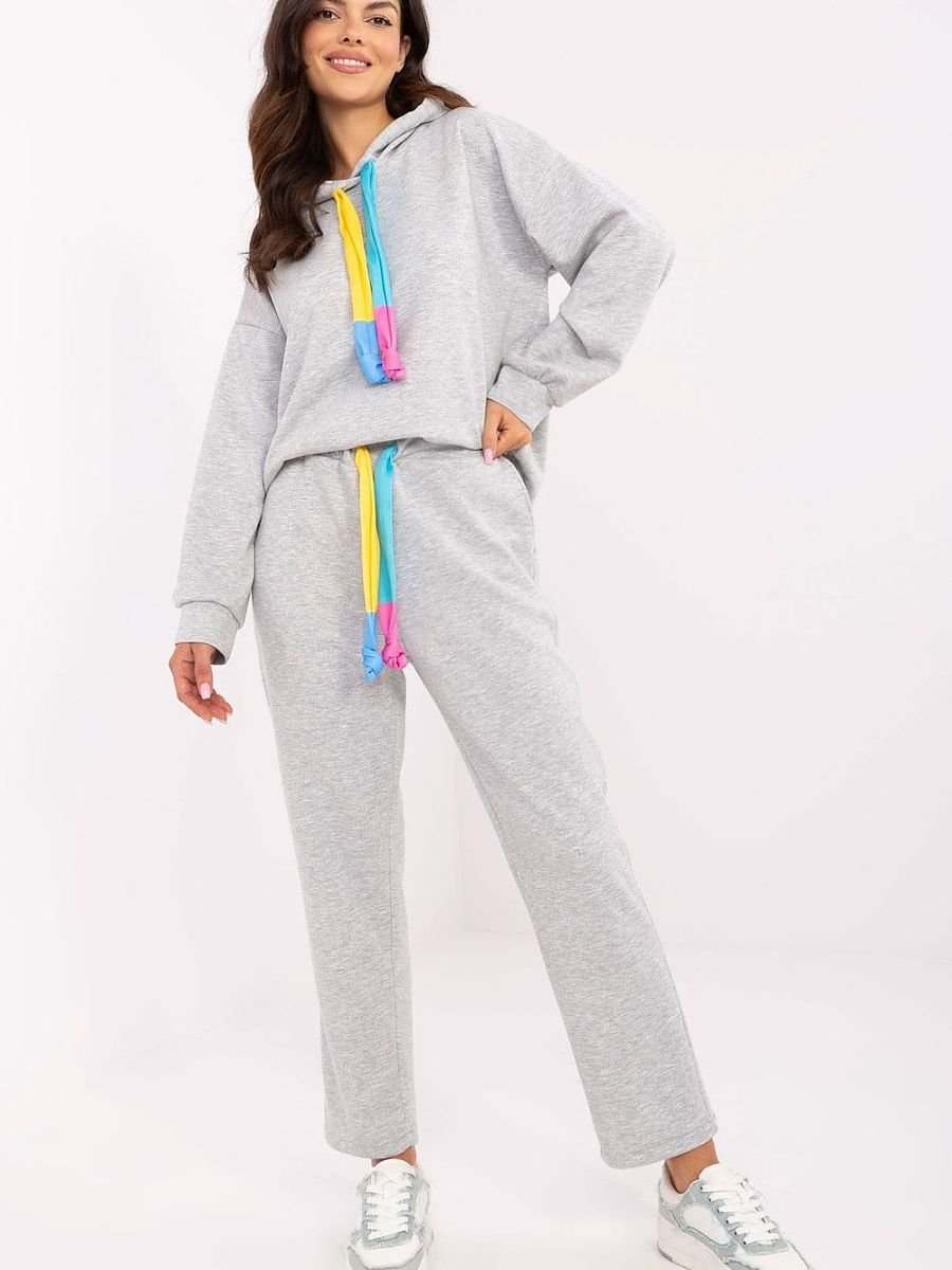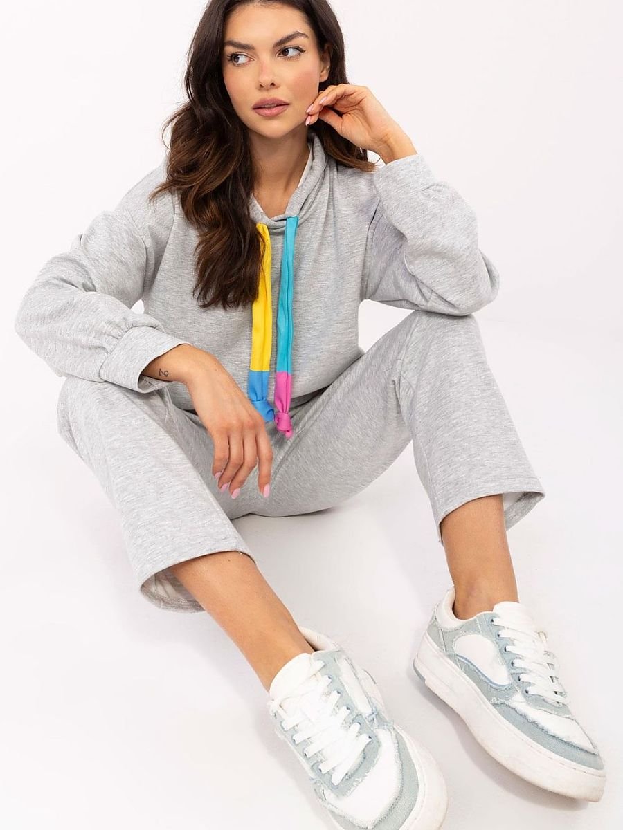 Komplet dresowy w stylu casual to idealny wybór na co dzień, łączący wygodę i modny wygląd. Wykonany z wysokiej jakości mieszanki poliestru, wiskozy i elastanu, zapewnia komfort noszenia oraz swobodę ruchów. Bluza z długim rękawem posiada praktyczny kaptur z troczkami do regulacji, co dodaje sportowego charakteru. Spodnie o prostym kroju i długich nogawkach mają wysoki stan oraz wsuwane boczne kieszenie, a dodatkowy troczek w pasie pozwala na idealne dopasowanie. Melanżowy szary wzór sprawia, że komplet jest uniwersalny i świetnie komponuje się z różnymi dodatkami. To doskonała opcja na codzienne stylizacje zarówno na spacer, zakupy, jak i relaks w domowym zaciszu.