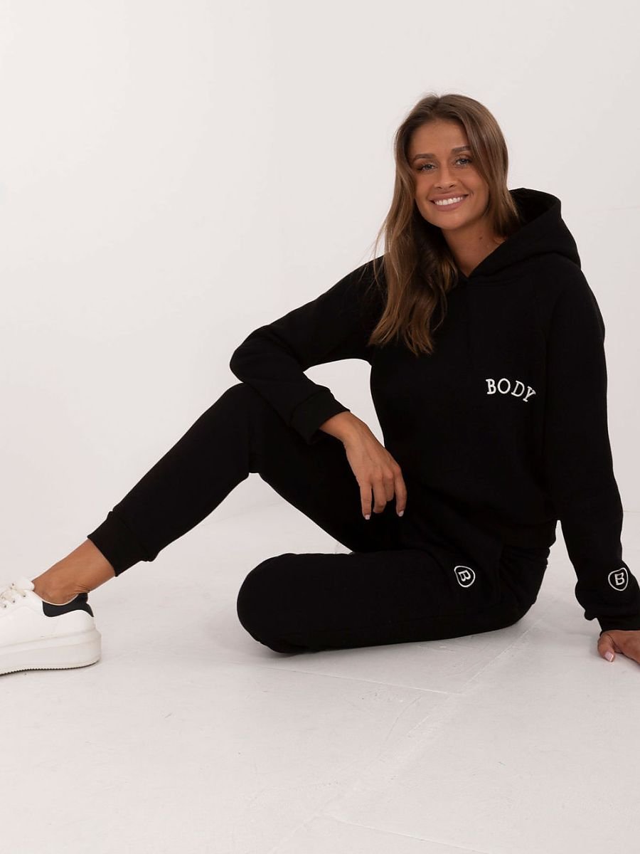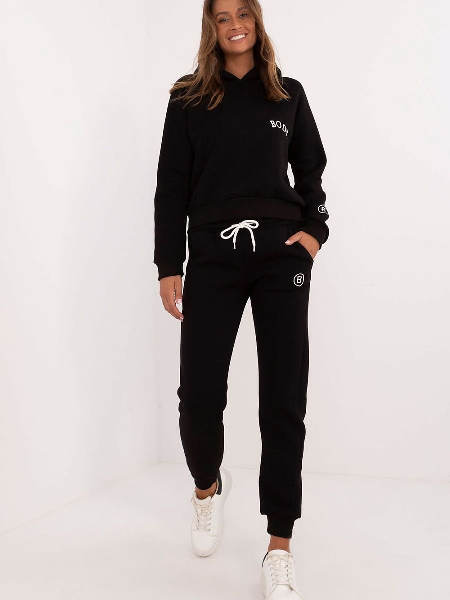 Damski ocieplany komplet, składający się z bluzy i spodni, idealny na chłodniejsze dni. Wykonany z mieszanki bawełny i poliestru, zapewnia ciepło oraz komfort noszenia. Dominujący melanżowy wzór dodaje całości stylowego, casualowego charakteru, a małe naszywki subtelnie urozmaicają design. Bluza posiada długi rękaw oraz praktyczny kaptur, idealny na niepogodę, a spodnie mają wysoki stan, w pasie regulowane wiązaniem dla idealnego dopasowania. Nogawki wykończone ściągaczami nadają spodniom sportowy wygląd, a boczne, wsuwane kieszenie zapewniają wygodę. Komplet doskonały na codzienne wyjścia i relaks w komfortowym stylu.