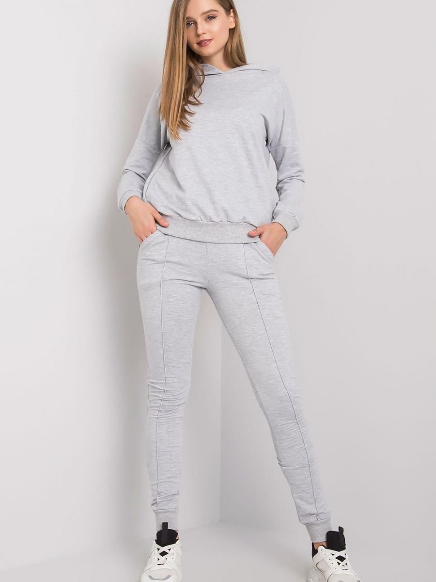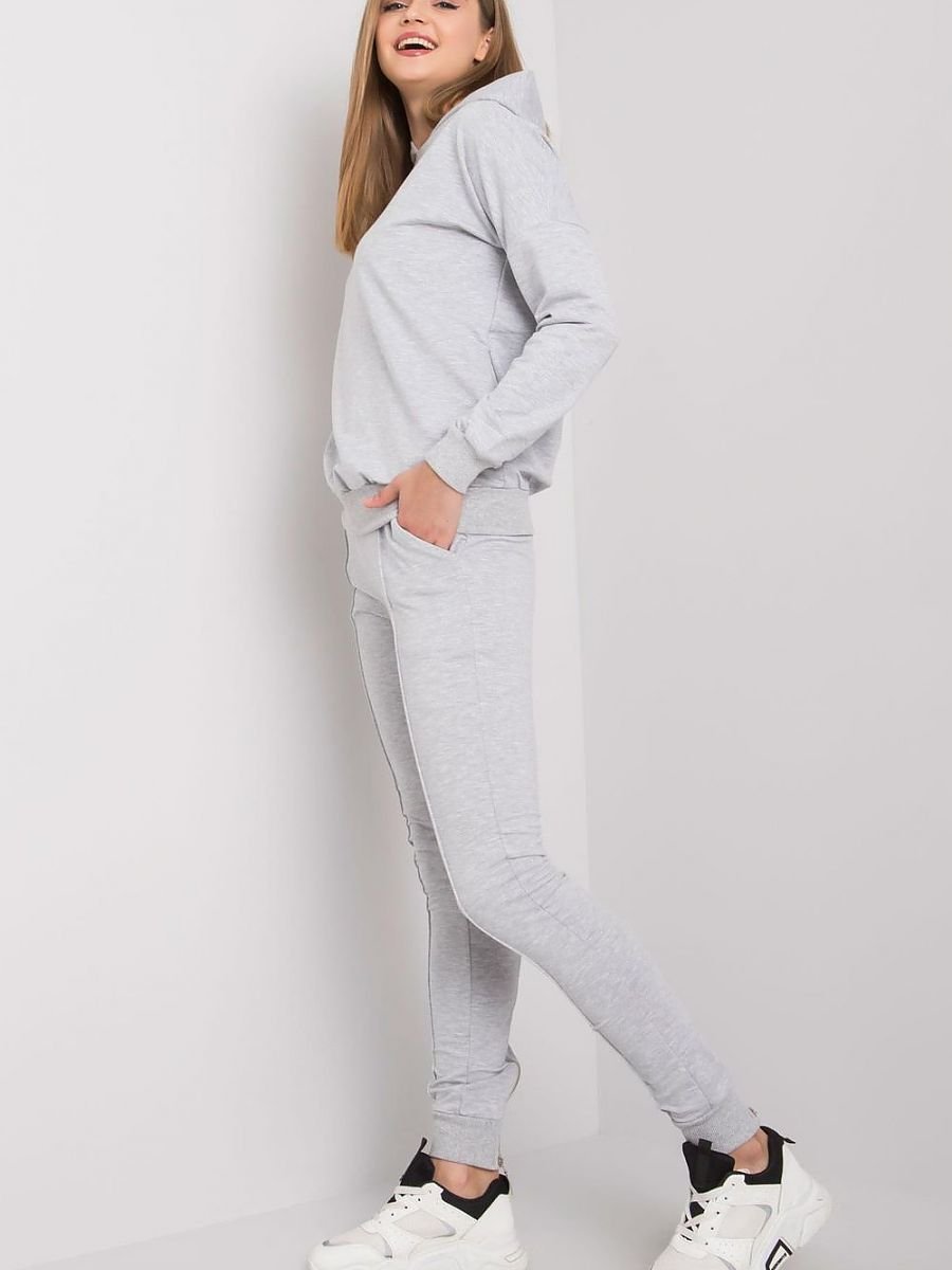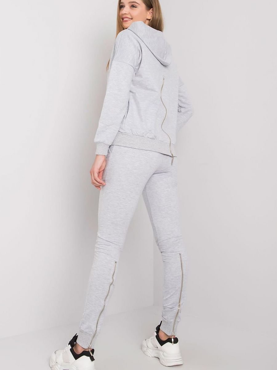 Komplet dresowy składający się z bluzy i spodni. Bluza z długim rękawem, kapturem, kieszeniami i ozdobnym zamkiem na plecach. Spodnie z kieszeniami wsuwanymi.