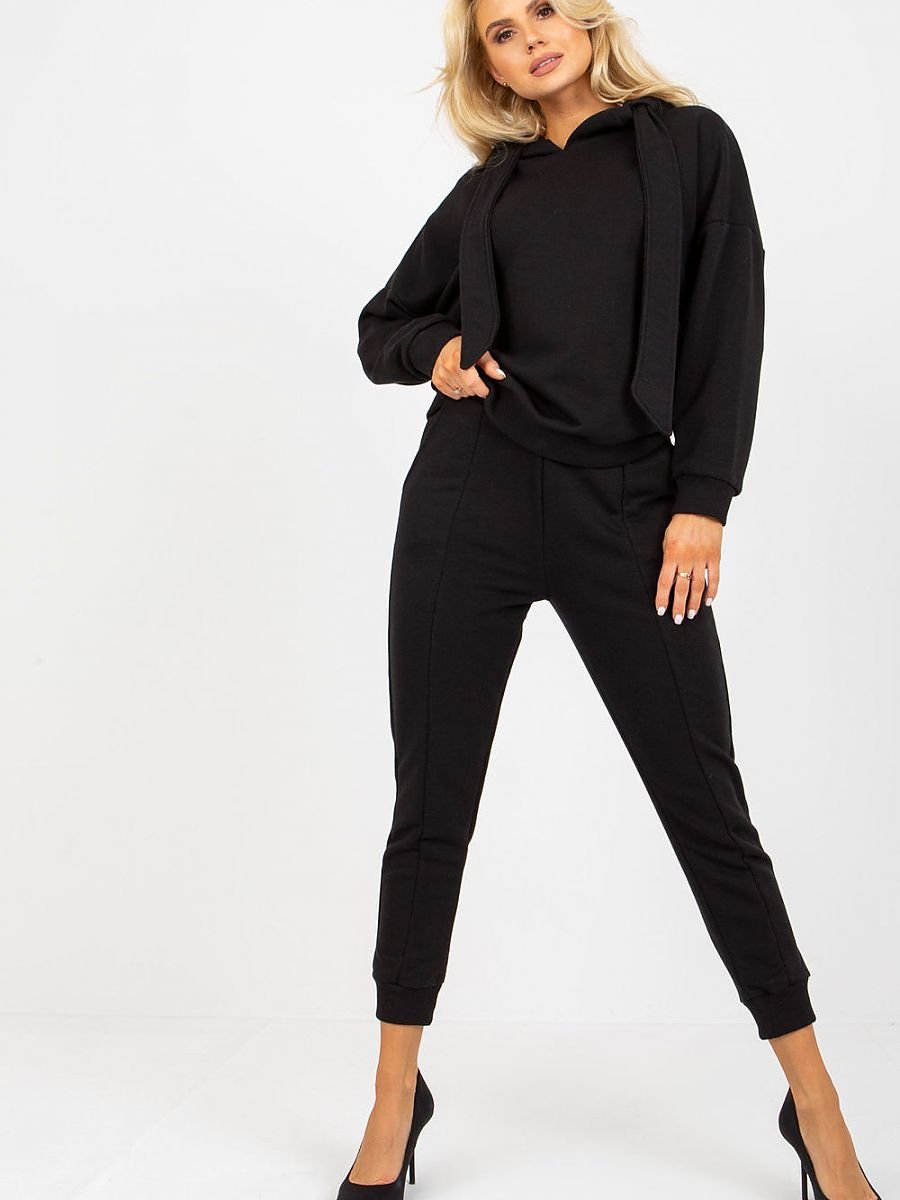 Komplet dresowy składający się z bluzy oraz spodni. Bluza z długim rękawem oraz kapturem. Spodnie dresowe z szeroką gumą, po bokach kieszenie wsuwane.