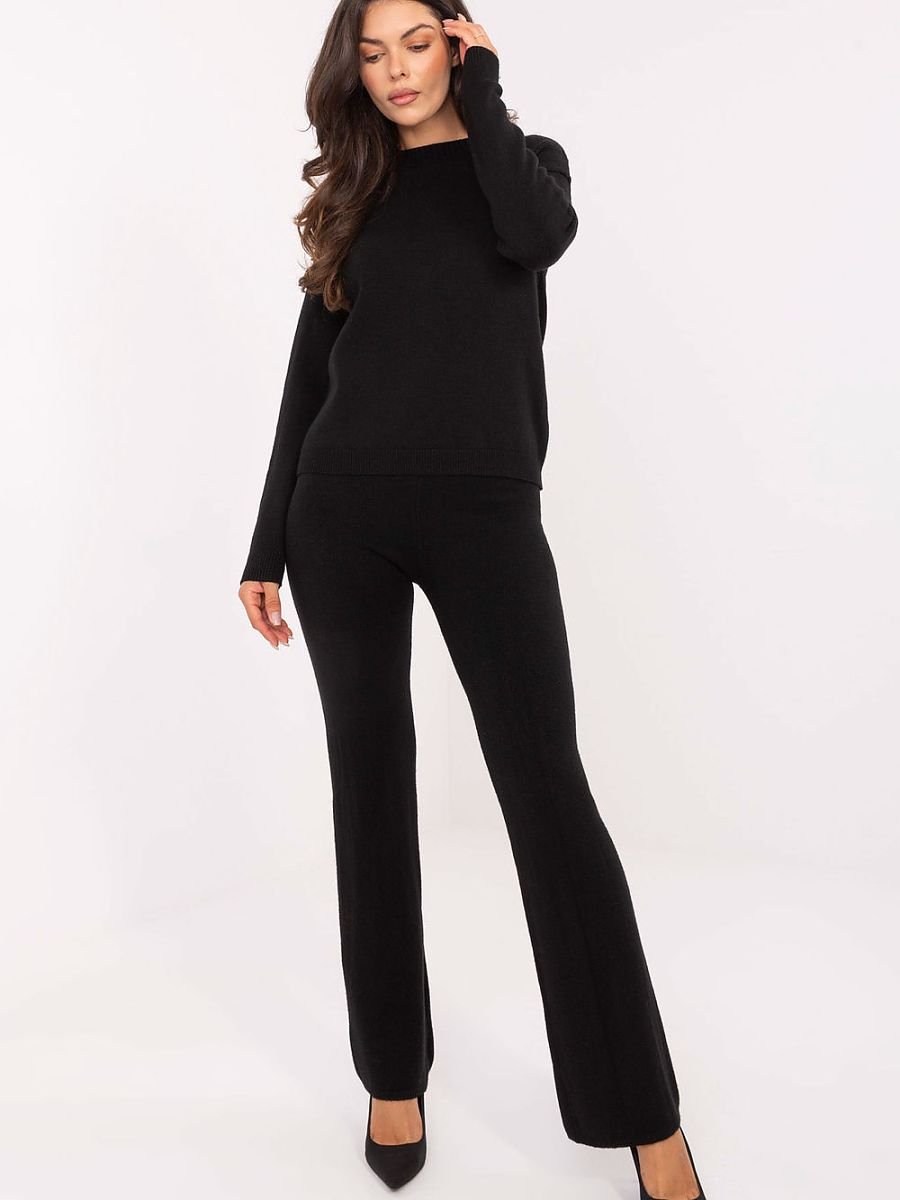 Casualowy komplet damski sweterkowy składający się ze swetra i spodni, idealny na co dzień. Wykonany z miękkiej i elastycznej mieszanki wiskozy, poliestru oraz elastanu, zapewnia wygodę, komfort noszenia i doskonałe dopasowanie do sylwetki. Sweter ma klasyczny okrągły dekolt oraz długie rękawy, dzięki czemu świetnie sprawdzi się w chłodniejsze dni. Spodnie o długich, szerokich nogawkach i wysokim stanie gwarantują swobodę ruchów oraz modny, nowoczesny wygląd. Gładki wzór podkreśla uniwersalny charakter kompletu, który łatwo zestawić z różnymi dodatkami. To praktyczny i stylowy wybór dla kobiet ceniących połączenie wygody z ponadczasową prostotą.