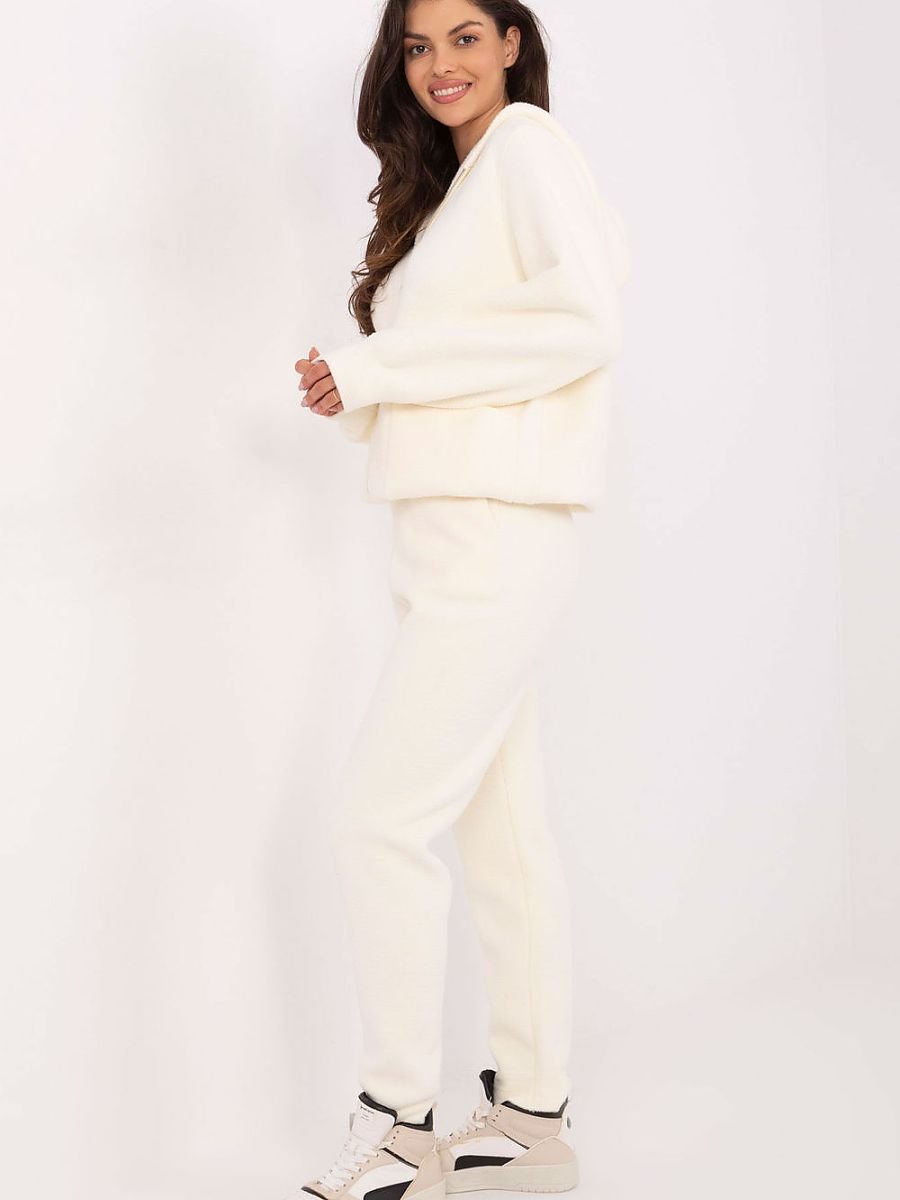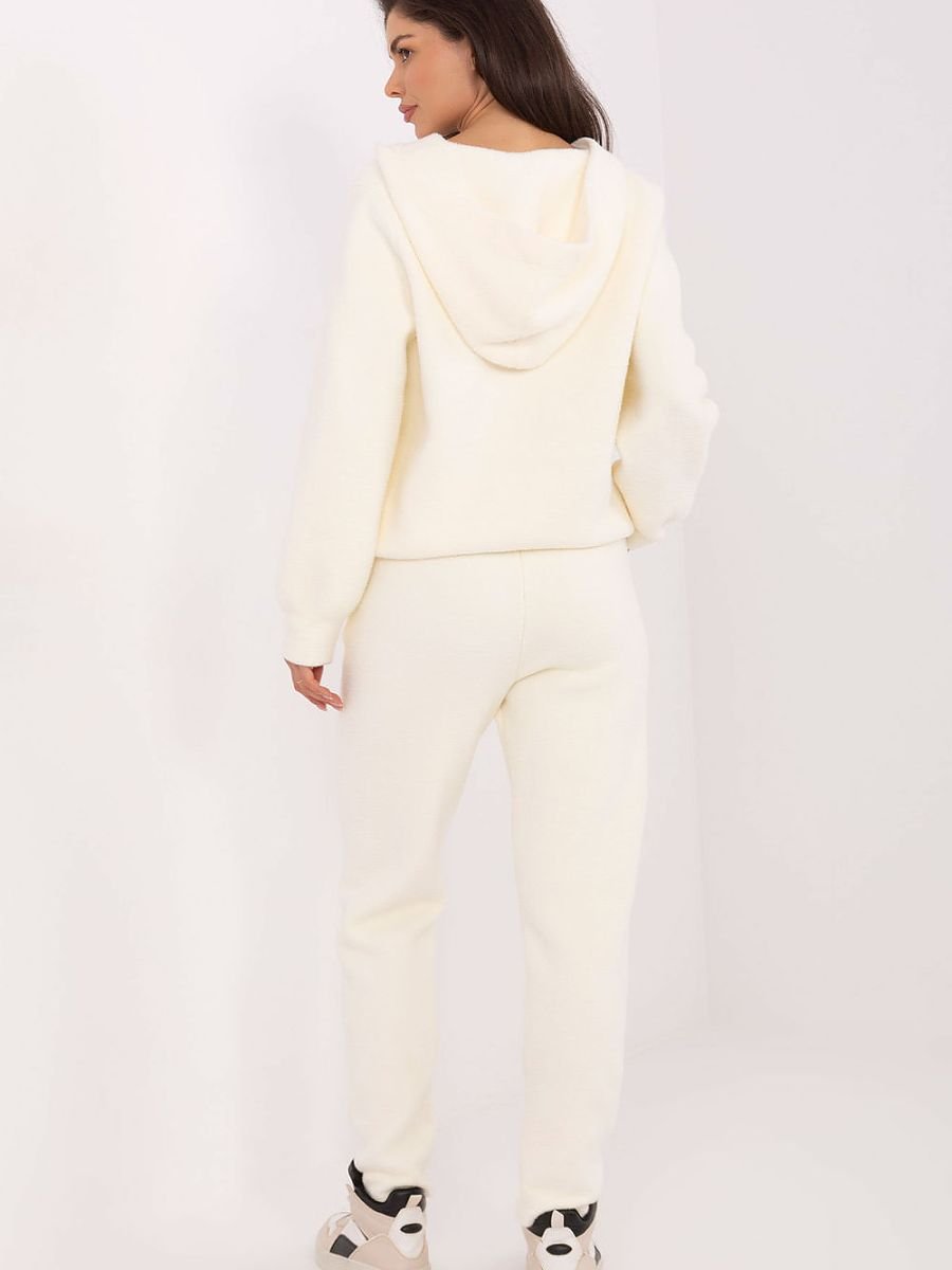 Ten casualowy komplet damski to idealna propozycja na chłodniejsze dni stylowy, wygodny i przyjemnie otulający. Wykonany z wysokiej jakości mieszanki wełny, wiskozy, angory i poliestru, zapewnia doskonały komfort cieplny, miękkość oraz trwałość. Bluza zapinana na zamek posiada praktyczny kaptur, długi rękaw oraz duże naszyte kieszenie na przodzie, które dodają charakteru i funkcjonalności. Jej prosty, gładki wzór sprawia, że doskonale komponuje się z różnymi dodatkami i sprawdzi się zarówno w domu, jak i na spacerze. Spodnie o długich, zwężanych nogawkach mają wysoki stan i wiązanie w pasie, dzięki czemu świetnie dopasowują się do sylwetki. Boczne, wsuwane kieszenie dodają praktyczności bez zaburzania minimalistycznej formy. To komplet idealny na codzienne aktywności, łączy swobodę ruchów, ciepło i modny wygląd w jednym zestawie.