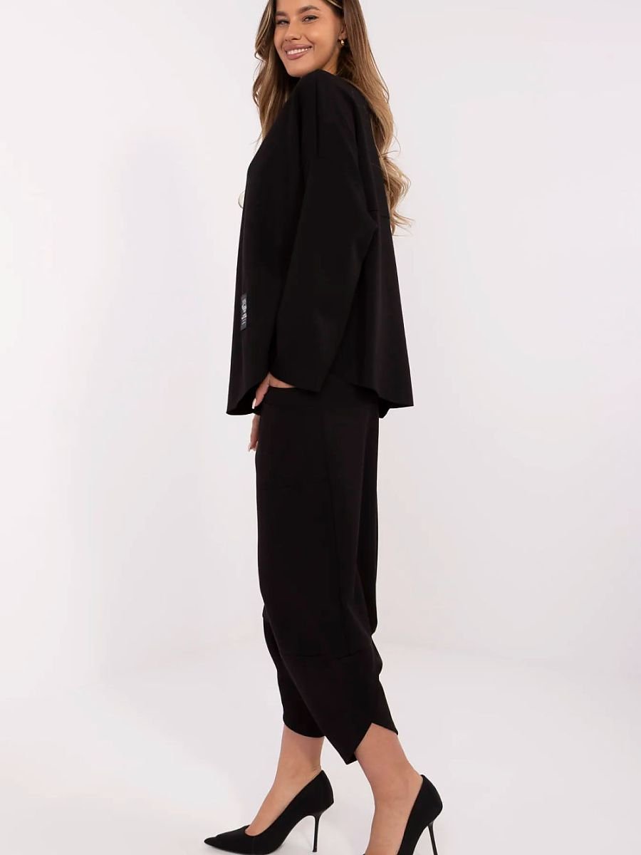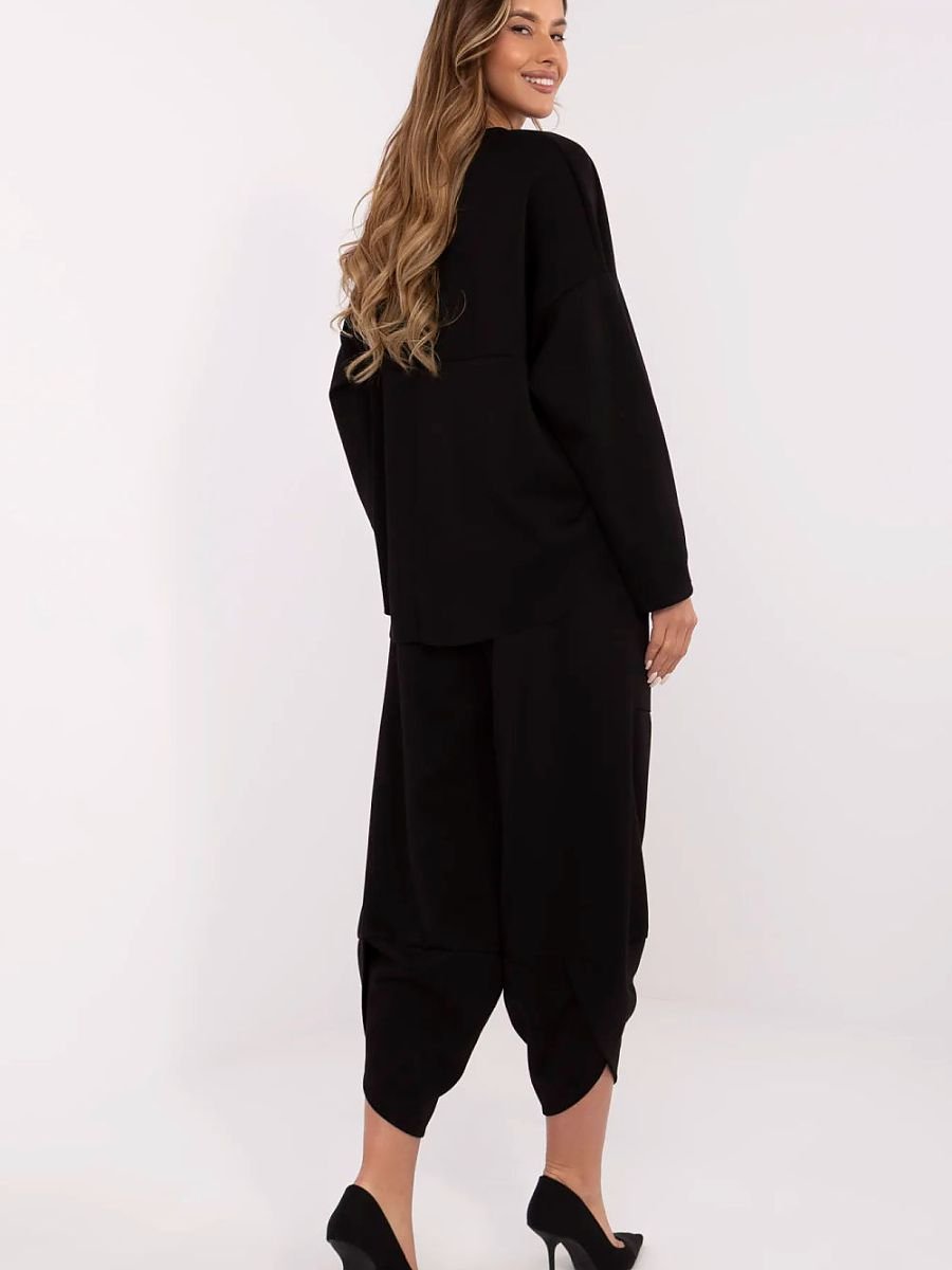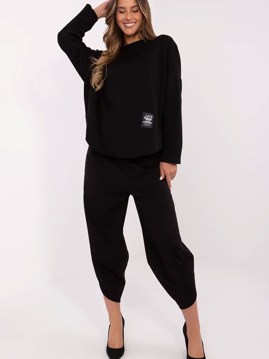 Damski komplet dresowy to doskonały wybór na co dzień dla kobiet ceniących wygodę i styl. Wykonany z wysokiej jakości mieszanki wiskozy, bawełny i elastanu, zapewnia komfort noszenia oraz dopasowanie do sylwetki. Bluza z długim rękawem oraz okrągłym dekoltem wyróżnia się subtelną naszywką u dołu, dodającą całości modnego akcentu. Spodnie o długości 7/8 z wysokim stanem podkreślają talię, a otwarte, naszyte kieszenie zapewniają funkcjonalność. Gładki wzór i casualowy styl sprawiają, że komplet świetnie sprawdzi się w codziennych stylizacjach, zarówno w domu, jak i na spacerze czy zakupach.