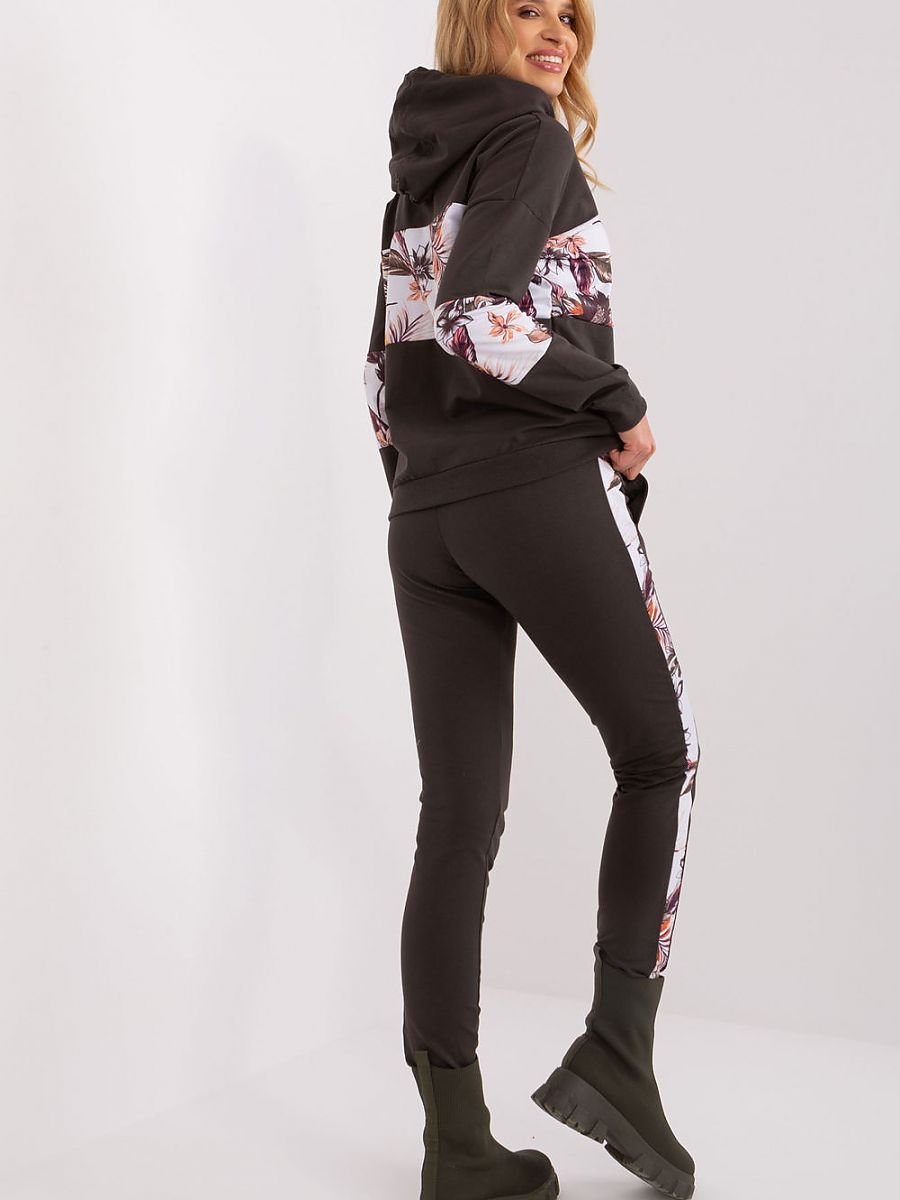 Ten komplet dresowy to połączenie doskonałego komfortu i oryginalnego stylu. Komplet ten to kwintesencja luzu i swobody, idealna propozycja dla miłośniczek niezobowiązującego, casualowego stylu. Bluza z długim rękawem oraz kapturem sprawdzi się w codziennych sytuacjach, zapewniając wygodę przez cały dzień. Oryginalne wstawki z materiału w kwiaty dodają zestawowi dresowemu niepowtarzalnego charakteru. To delikatny detal, który nadaje całości świeżości i kobiecego uroku. Dominujący materiał z bawełny gwarantuje uczucie miękkości i przewiewności. To idealny wybór dla osób ceniących sobie naturalne włókna. Ściągacze na nogawkach spodni to nie tylko modny detal, ale także praktyczne rozwiązanie. Dodają one lekkości i swobodnego charakteru, a jednocześnie utrzymują spodnie na właściwym miejscu. Wysoki stan spodni nie tylko dodaje stylizacji nowoczesności, ale także zapewnia wygodę noszenia. To doskonałe rozwiązanie dla osób ceniących sobie stabilność i komfort. Praktyczne kieszenie boczne to idealne miejsce na schowanie drobiazgów czy rozgrzewanie dłoni w chłodniejsze dni. Elastyczne wiązanie w pasie pozwala na dostosowanie spodni do indywidualnych preferencji, gwarantując idealne dopasowanie. Ten komplet dresowy to propozycja dla kobiet, które pragną połączyć wygodę z modowym wyrazem. Sprawdzi się zarówno podczas relaksu w domu, jak i na spacerze czy spotkaniu ze znajomymi, dodając każdej stylizacji unikalnego charakteru.