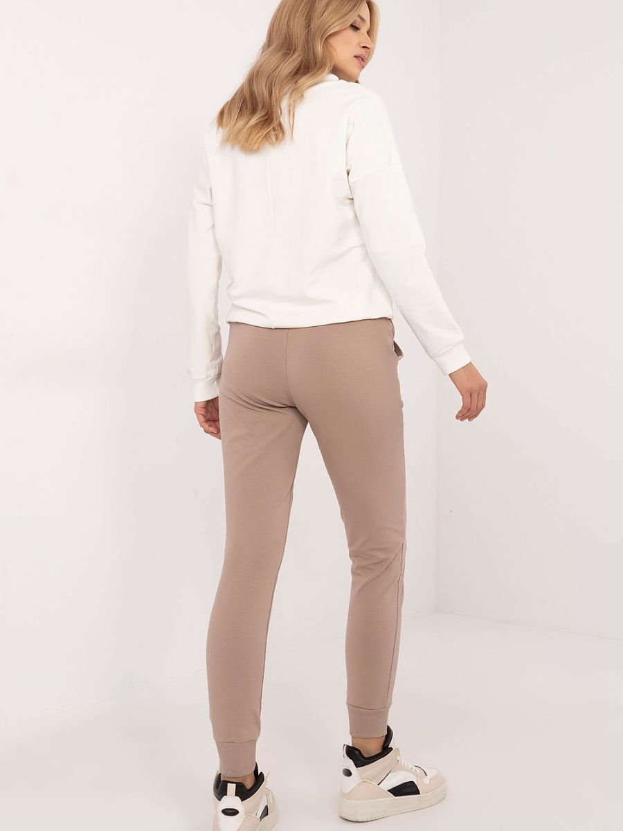 Casualowy komplet damski składający się z bluzy i spodni, idealny na co dzień. Wykonany z miękkiej mieszanki bawełny i elastanu, zapewnia wygodę i swobodę ruchu. Bluza ma długi rękaw, okrągły dekolt oraz modny nadruk na przodzie, który dodaje jej charakteru. Spodnie o długich nogawkach zakończone są ściągaczami, co nadaje im sportowego wyglądu, a wysoki stan podkreśla talię. Dodatkowo spodnie mają boczne, wsuwane kieszenie, co zwiększa ich funkcjonalność. Ten gładki komplet to doskonały wybór dla osób ceniących komfort i styl w codziennych stylizacjach.