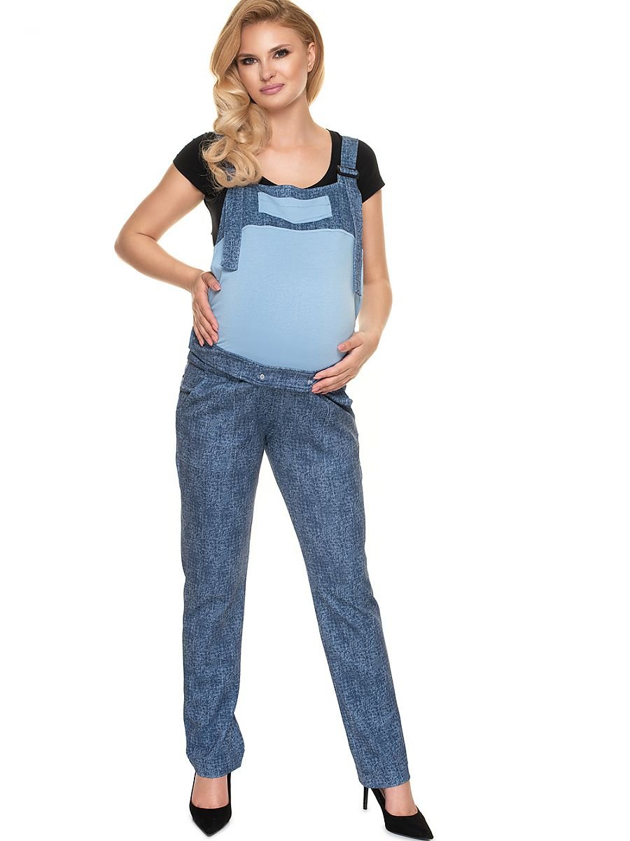 Spodnie ogrodniczki ciążowe. Spodnie o luźniejszym kroju. Odpinany górny panel.