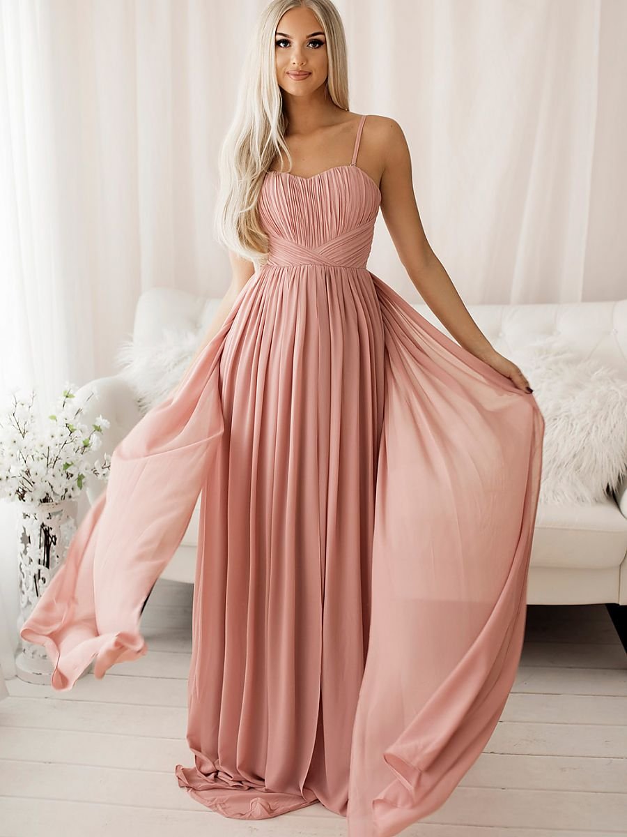 Długa tiulowa suknia na cienkich ramiączkach. Sukienka zapinana na zamek. Idealna na wiele okazji.