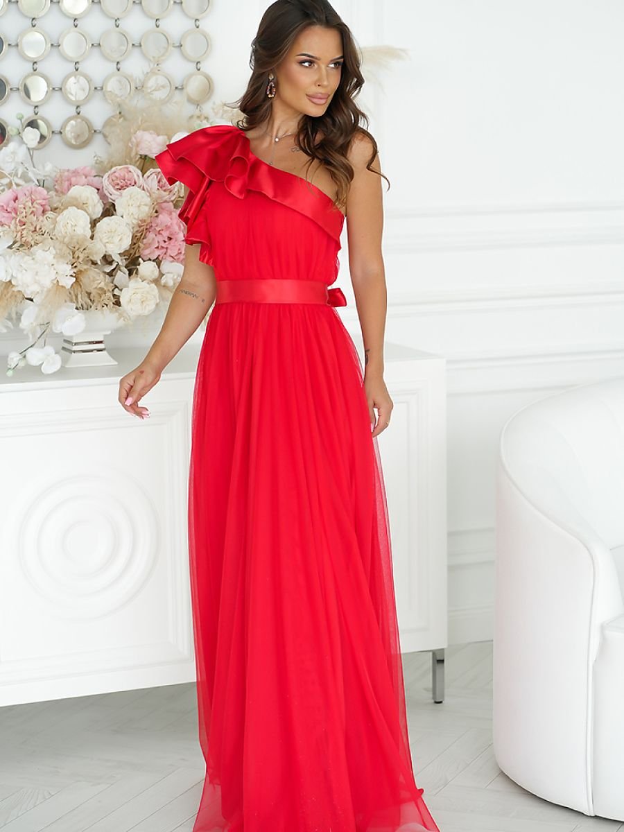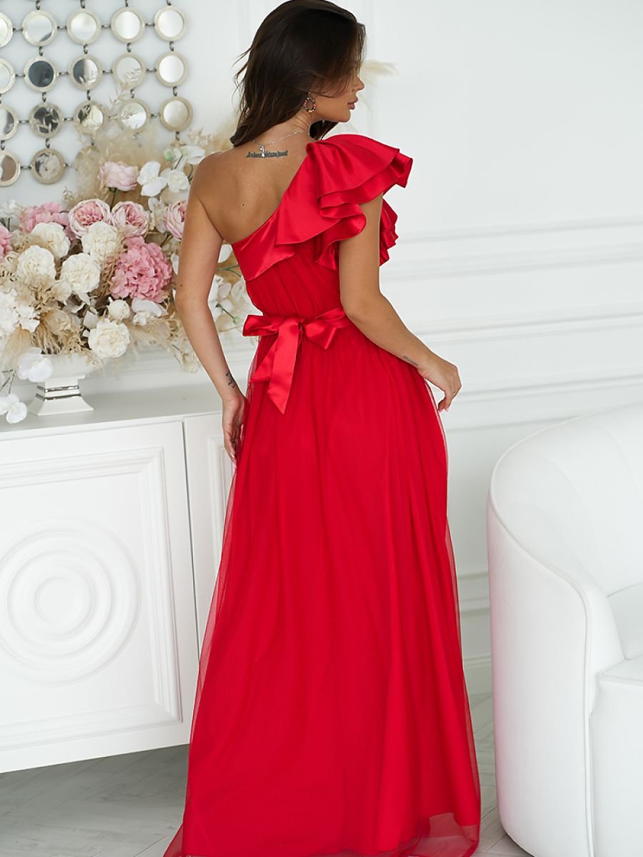 Nasza długa sukienka została stworzona z myślą o kobietach, które cenią sobie zarówno wygodę, jak i styl. Wykonana z lekkiej, zwiewnej siatki, delikatnie opływa sylwetkę, tworząc niezwykle kobiecą i subtelną linię. Wysokie rozcięcie na nodze dodaje kreacji zmysłowości, a falbana z satyny na jednym ramieniu nadaje jej niepowtarzalnego charakteru. Sukienka posiada podszewkę, zapinana na kryty zamek. Idealna na wyjątkowe okazje.
