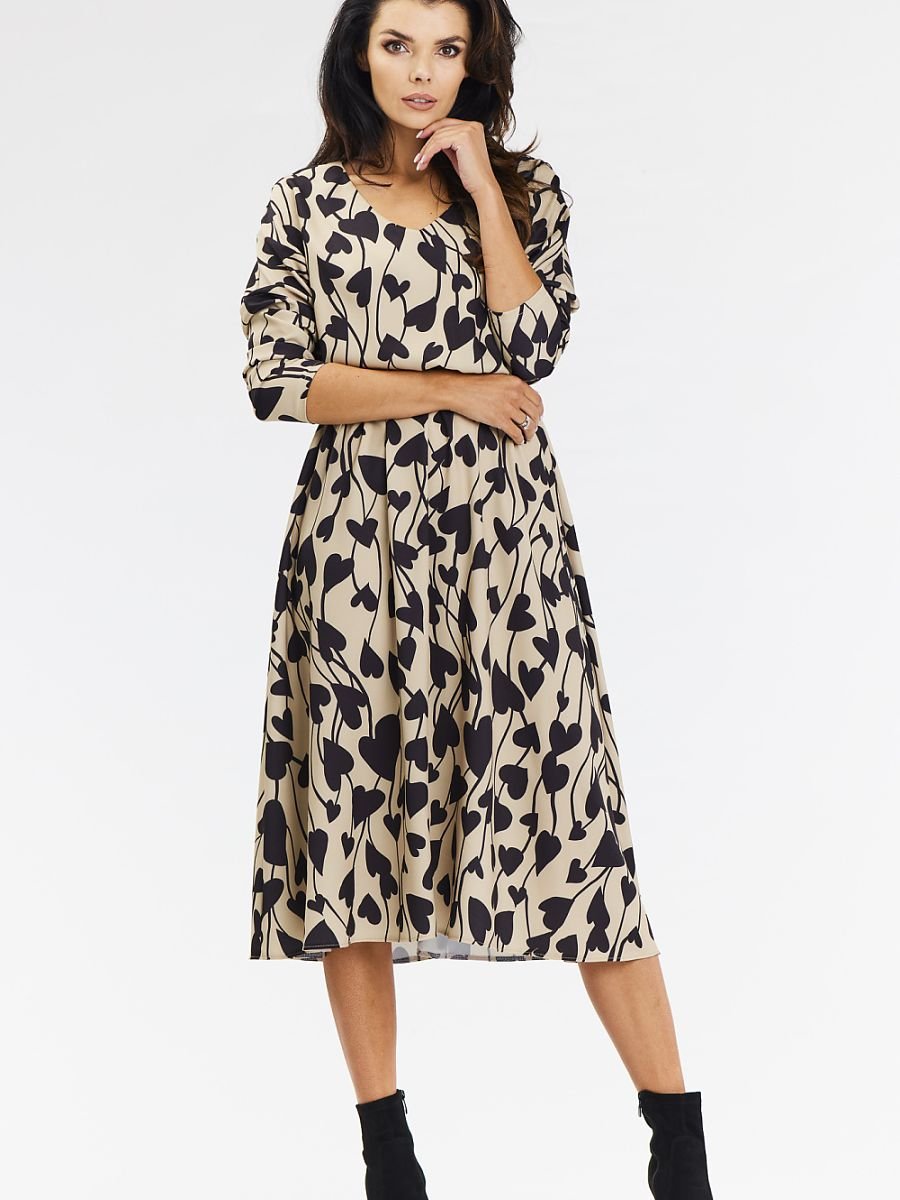 Sukienka Model A666 Beige/Black Hearts – awama