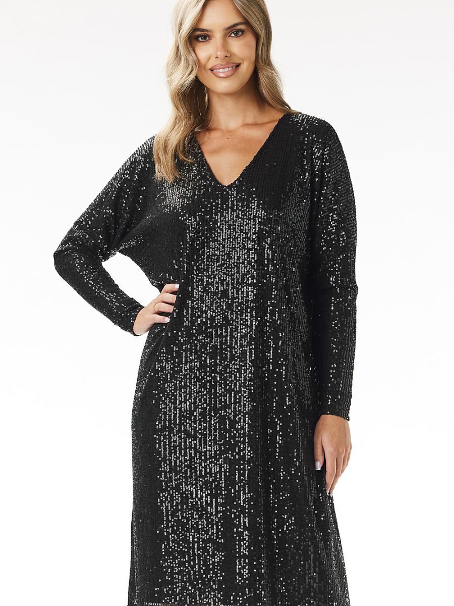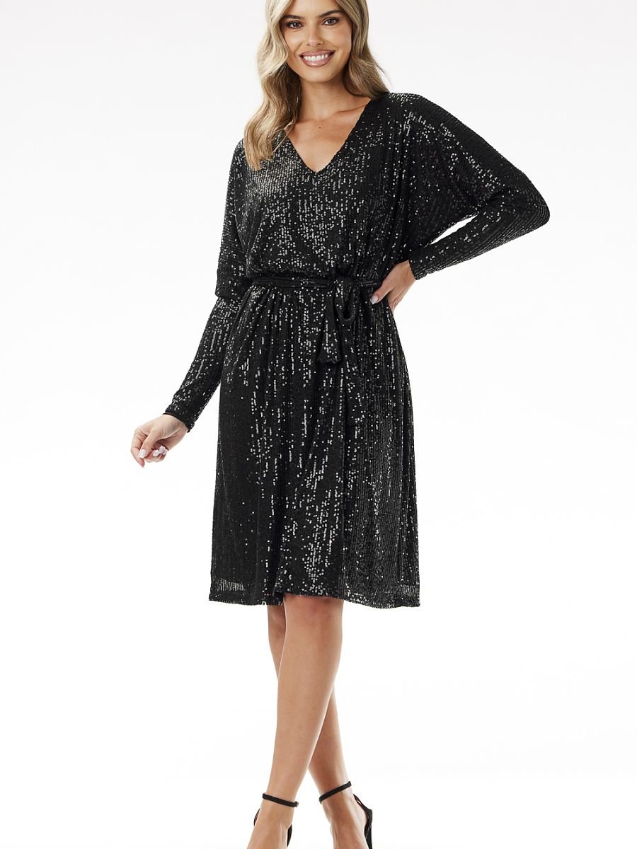 Cekinowa sukienka trapezowa midi z dekoltem V. Odkryj elegancję na wyjątkowe okazje dzięki cekinowej sukience midi o trapezowym kroju od polskiej marki Awama. Subtelny blask i komfortowy fason to idealne połączenie na święta, sylwestra czy eleganckie uroczystości. Zjawiskowa sukienka z dekoltem V i połyskującymi cekinami to idealny wybór na wieczorne wyjścia. Trapezowy fason zapewnia swobodę i elegancję, jednocześnie wysmuklając sylwetkę. Poczuj się wyjątkowo i błyszcz w każdej chwili!