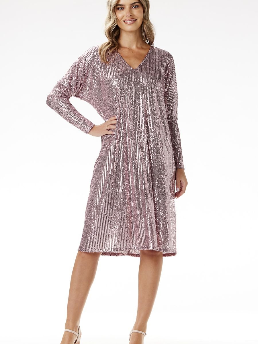 Cekinowa sukienka trapezowa midi z dekoltem V. Odkryj elegancję na wyjątkowe okazje dzięki cekinowej sukience midi o trapezowym kroju od polskiej marki Awama. Subtelny blask i komfortowy fason to idealne połączenie na święta, sylwestra czy eleganckie uroczystości. Zjawiskowa sukienka z dekoltem V i połyskującymi cekinami to idealny wybór na wieczorne wyjścia. Trapezowy fason zapewnia swobodę i elegancję, jednocześnie wysmuklając sylwetkę. Poczuj się wyjątkowo i błyszcz w każdej chwili!