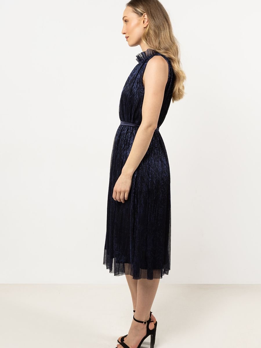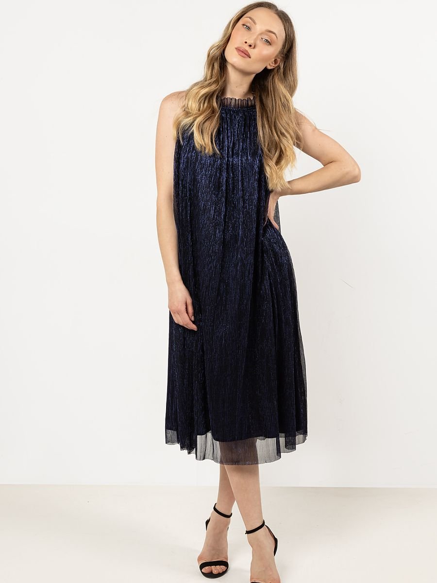 Elegancja i nowoczesność, ta sukienka to idealny wybór na wyjątkowe okazje. Trapezowy krój i odkryte ramiona nadają jej lekkości, a satynowy pasek w talii subtelnie podkreśla sylwetkę. Dekolt halther dodaje szyku, a satynowa podszewka zapewnia komfort noszenia. Doskonale sprawdzi się na eleganckie przyjęcia i wyjątkowe uroczystości.