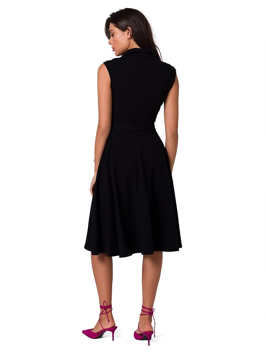 Sukienka bez rękawów z kołnierzykiem i rozpinana na przodzie, z lekko rozkloszowanym dołem. Idealna do pracy i na spacer w ciepłe dni.