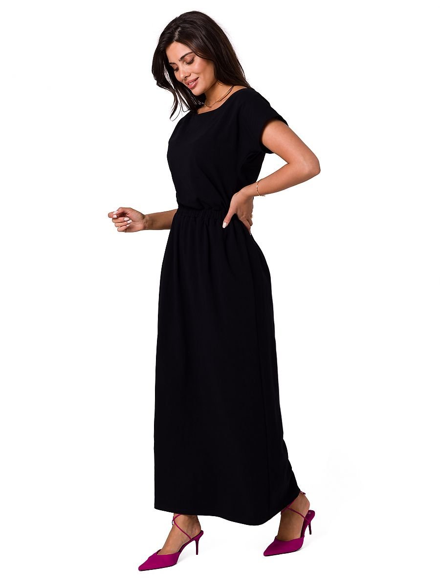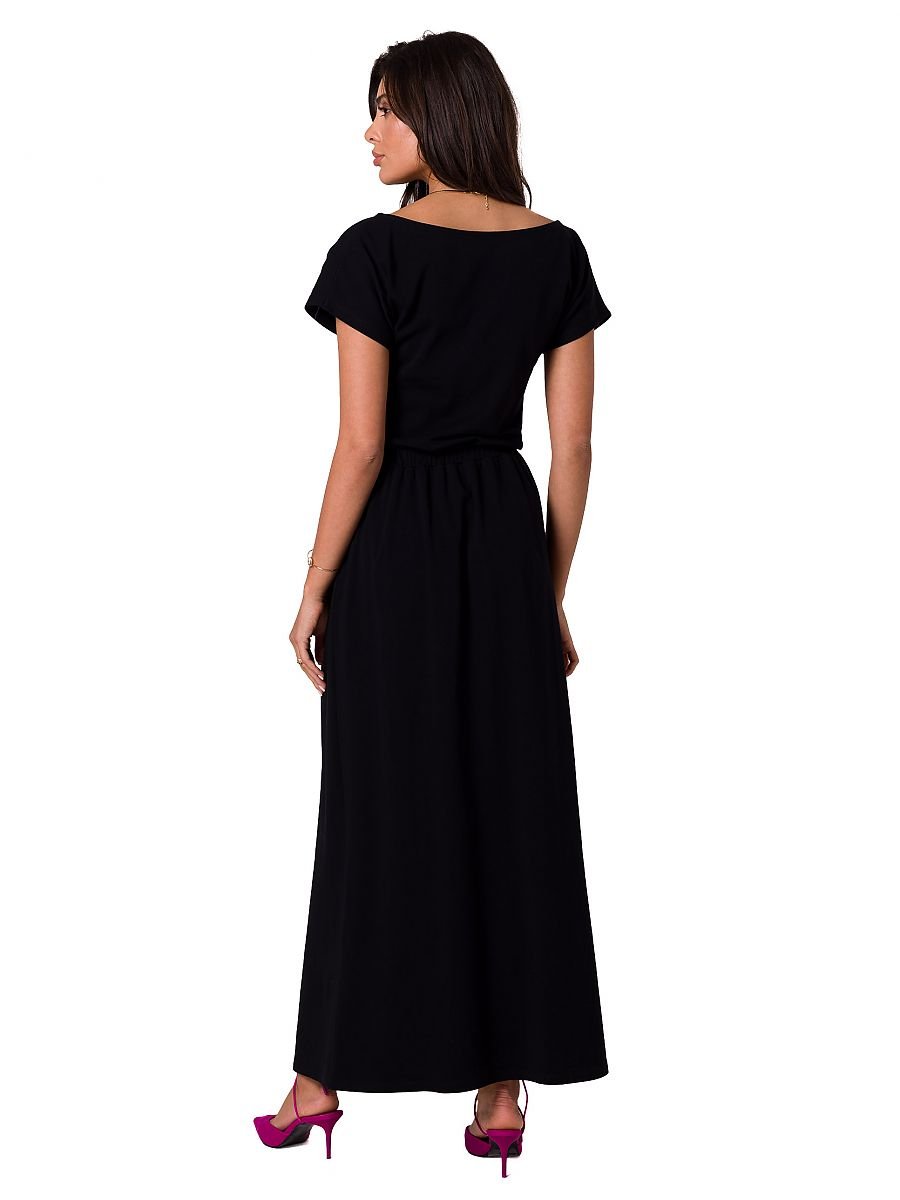 Komfortowa, bawełniana sukienka maxi z dekoltem lekko opadającym na jedno ramię oraz gumka w pasie.