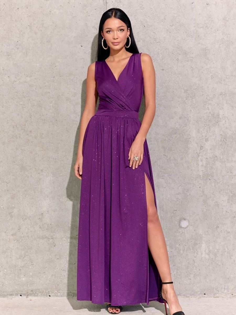 Brokatowa sukienka maxi z wiązaniem na plecach to znakomity wybór wśród naszych sukienek wieczorowych. Sukienka jest oszałamiająca, ze względu na małe błyszczące drobinki w materiale. W słońcu, bądź światłach reflektorów będzie pięknie się mienić różnego typu barwami. Brokatowa sukienka maxi z wiązaniem na plecach wyprodukowana jest z pięknej, mieniącej się tkaniny, która zapewni nam olśniewający wygląd. Sukienka cechuje się kopertowym dekoltem oraz rozcięciem na nogę, które dodaje zmysłowości. Sukienka posiada ozdobne wiązanie na plecach. Zapinana jest na kryty zamek błyskawiczny. Wieczorowa sukienka szczególnie dobrze wygląda na kobietach, które lubią błyszczeć i czuć się jak prawdziwa gwiazda. Długa sukienka będzie idealna na wszelkiego typu uroczystości, takie jak: wesele, komunia, impreza firmowa. Produkt jest wyprodukowany i uszyty w Polsce.