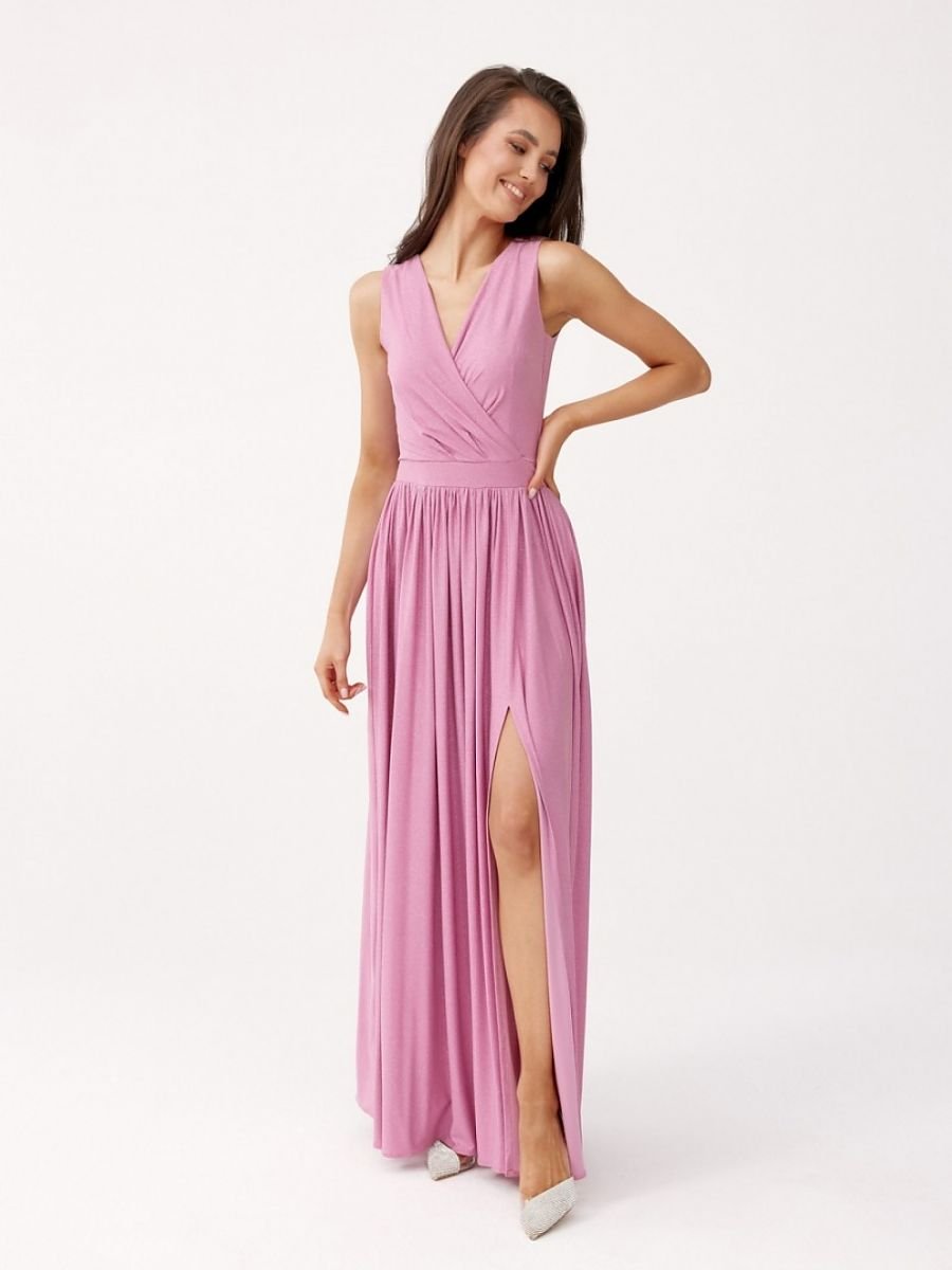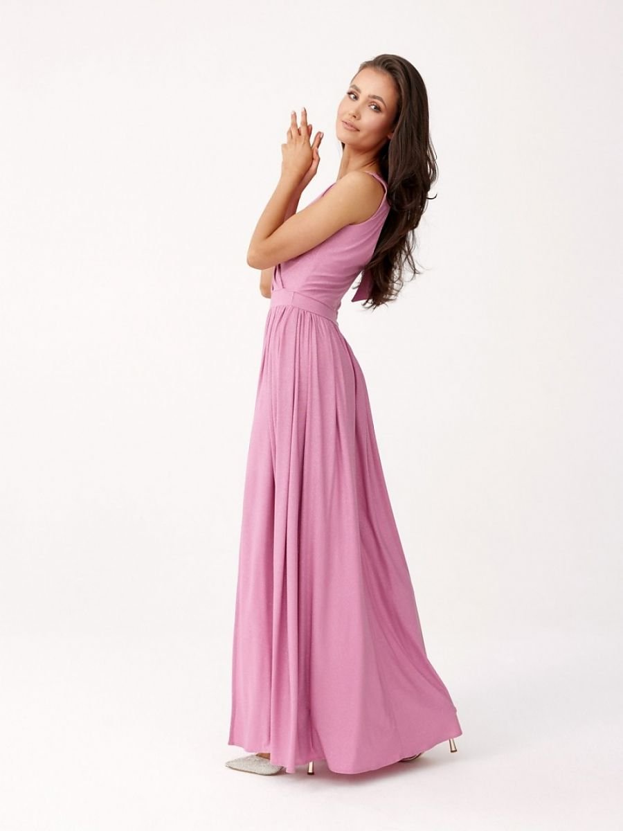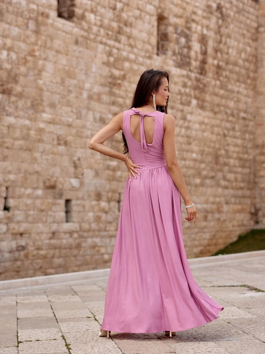 Brokatowa sukienka maxi z wiązaniem na plecach to znakomity wybór wśród naszych sukienek wieczorowych. Sukienka jest oszałamiająca, ze względu na małe błyszczące drobinki w materiale. W słońcu, bądź światłach reflektorów będzie pięknie się mienić różnego typu barwami. Brokatowa sukienka maxi z wiązaniem na plecach wyprodukowana jest z pięknej, mieniącej się tkaniny, która zapewni nam olśniewający wygląd. Sukienka cechuje się kopertowym dekoltem oraz rozcięciem na nogę, które dodaje zmysłowości. Sukienka posiada ozdobne wiązanie na plecach. Zapinana jest na kryty zamek błyskawiczny. Wieczorowa sukienka szczególnie dobrze wygląda na kobietach, które lubią błyszczeć i czuć się jak prawdziwa gwiazda. Długa sukienka będzie idealna na wszelkiego typu uroczystości, takie jak: wesele, komunia, impreza firmowa. Produkt jest wyprodukowany i uszyty w Polsce.