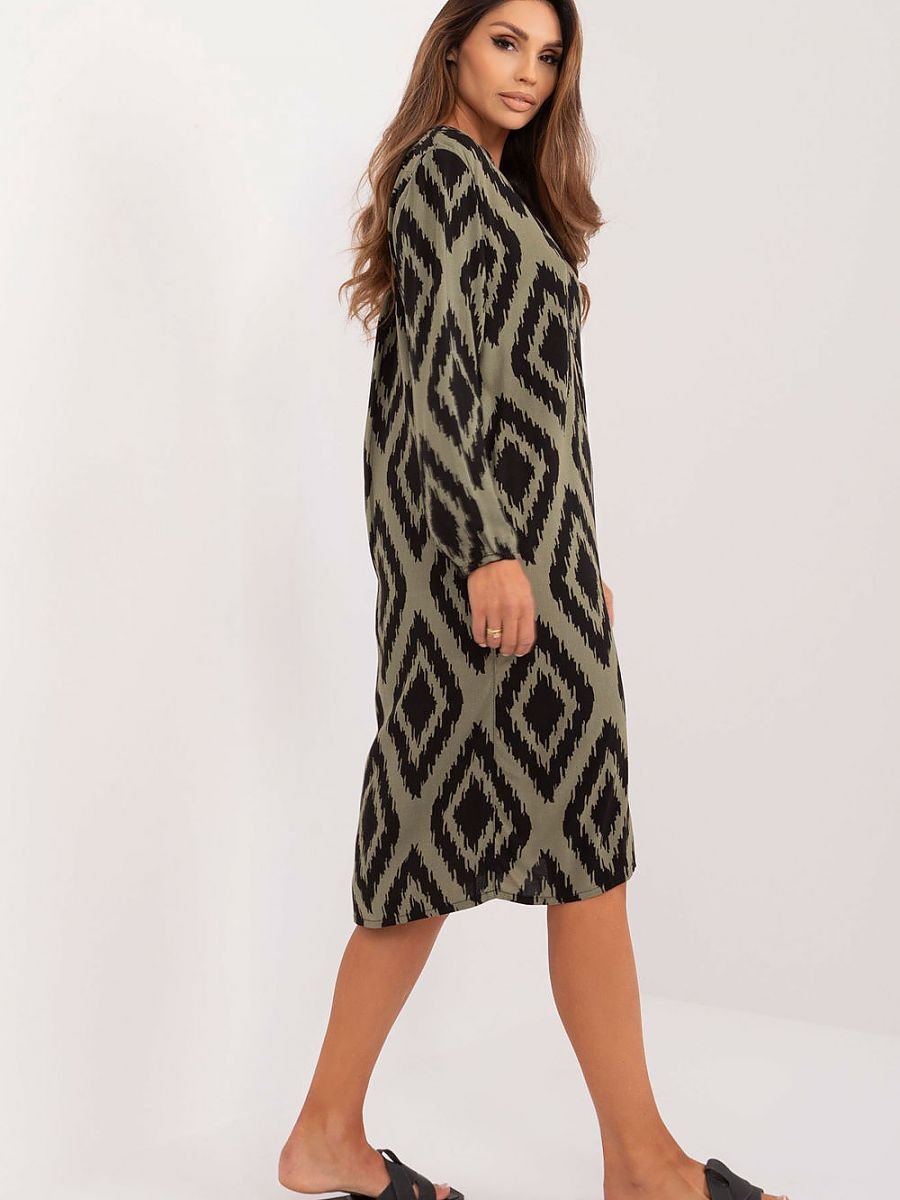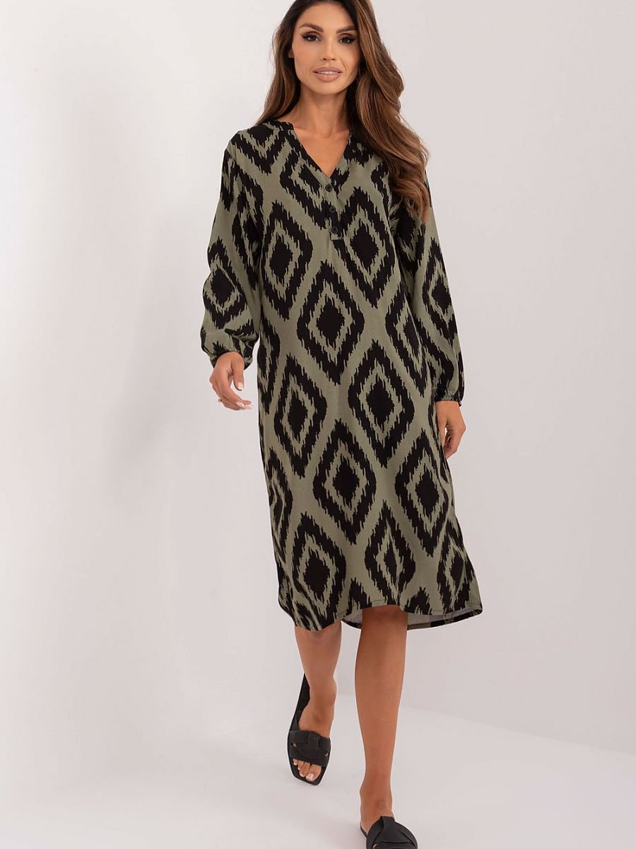 Ta letnia sukienka to idealna propozycja na każdy dzień, łącząca w sobie wygodę, styl i ekologiczną świadomość. Jej charakterystyczny fason koszulowy sprawia, że jest nie tylko modne, ale też praktyczne i wszechstronne. Wykonana z miękkiej i przewiewnej wiskozy, sukienka doskonale sprawdzi się w ciepłe dni, zapewniając komfort noszenia i swobodę ruchów. Jej długi rękaw nadaje jej wszechstronności, umożliwiając noszenie nie tylko latem, ale także w chłodniejsze dni. Sukienka ma długość sięgającą przed kolano, co nadaje jej dziewczęcego i swobodnego charakteru. Jej asymetryczny fason dodaje oryginalności i nowoczesności, podkreślając indywidualny styl noszącej. Nadruk nadaje sukience lekkości i świeżości, idealnie komponując się z letnią aurą. Dekolt w serek odsłania subtelnie obojczyki, dodając kobiecości i delikatności całej stylizacji. Ozdobą są guziki przy dekolcie, które nadają sukience eleganckiego akcentu. Jako odzież ekologiczna, ta sukienka nie tylko wygląda świetnie, ale też wspiera ideę zrównoważonej mody, co sprawia, że noszenie jej daje dodatkową przyjemność i satysfakcję. Doskonale sprawdzi się jako codzienna opcja dla kobiet ceniących sobie wygodę, styl i dbałość o środowisko naturalne.