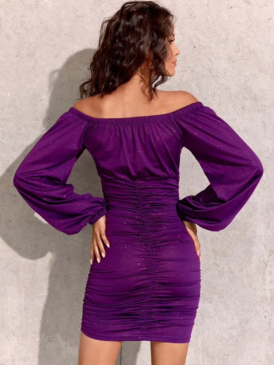 Sukienka o długości mini pokryta brokatem z odkrytymi ramionami to ciekawa propozycja na imprezy świąteczne i karnawałowe. Ta kreacja to długie, luźne rękawy zakończone elastyczną gumką i odsłaniający ramiona dekolt. Jej dopasowany krój świetnie podkreśla sylwetkę, a marszczenia niwelują ewentualne niedoskonałości. Zapinana jest na kryty zamek błyskawiczny, który znajduje się z boku sukienki. Przy dekolcie została wszyta elastyczna gumka, która zapobiega zsuwaniu się z ramion. Delikatna tkanina zapewnia efektowne wejście. Dopasowana sukienka hiszpanka szczególnie dobrze wygląda na kobietach, które lubią czuć się pewnie i zmysłowo. Efekt błysku uzupełnij ulubioną biżuterią i wysokimi butami. Produkt jest wyprodukowany i uszyty w Polsce.