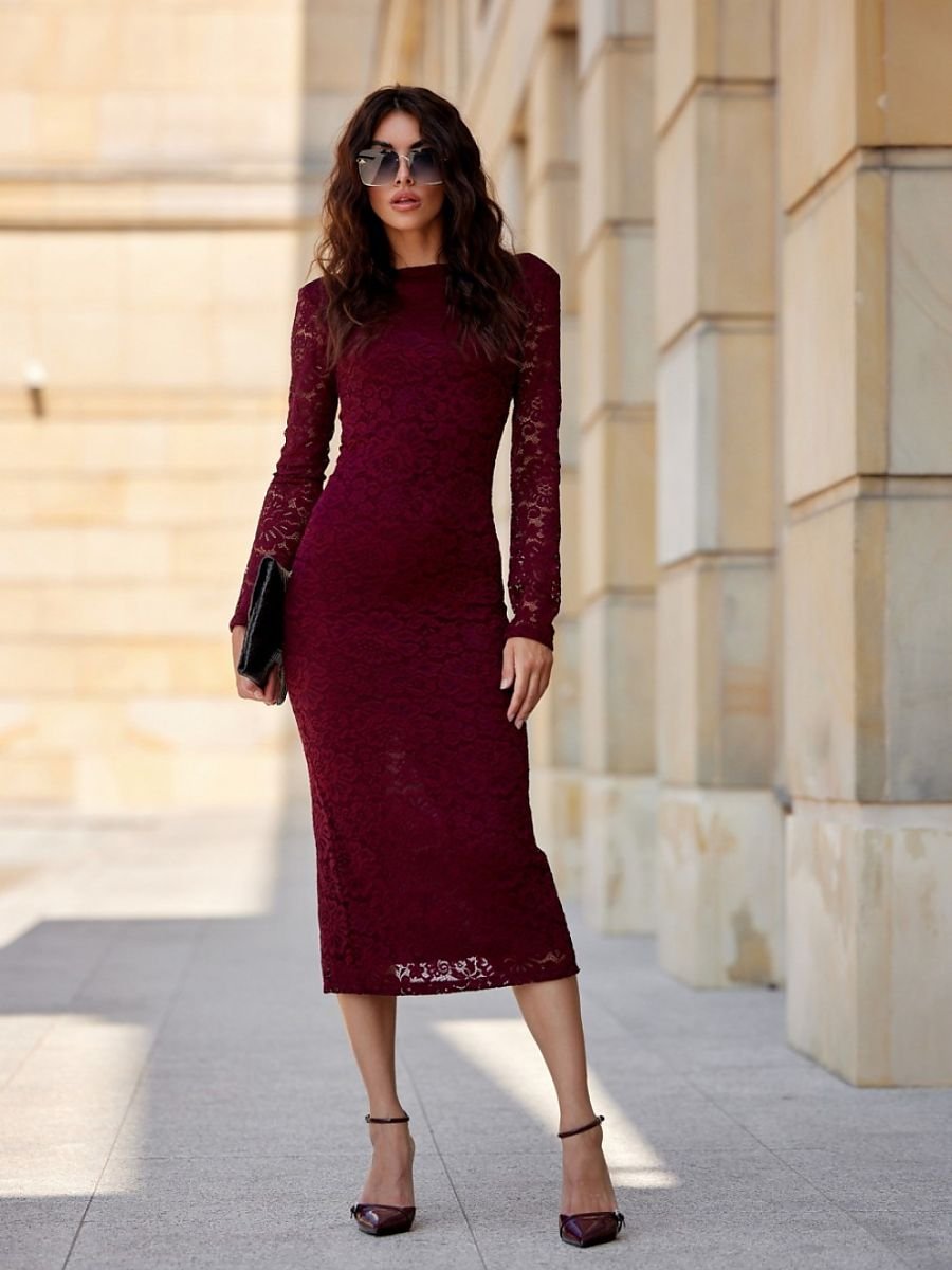 Wykonana z najwyższej jakości koronkowego materiału, ta sukienka łączy w sobie ponadczasowy styl z nowoczesnym wyrafinowaniem. Elegancka koronka zachwyca subtelnością. W sukience zastosowano podszewkę, za sprawą której możesz być pewna, że nic nie prześwituje, a gwarantuje pełne poczucie komfortu. Okrągły dekolt podkreśla biust, a wycięcie w serek na plecach dodaje zwiewności i zmysłowości. Z tyłu sukienki znajduje się eleganckie rozcięcie na nogę, które ułatwia poruszanie się i dodaje kobiecej gracji. Poduszki w ramionach doskonale podkreślają sylwetkę oraz eksponują linię i barków. Ta sukienka to prawdziwy kameleon w Twojej garderobie! Doskonale skomponuje się z klasycznymi szpilkami lub eleganckimi botkami na obcasie. Aby dopełnić look, wystarczy dobrać delikatną biżuterię oraz kopertówkę w stonowanym kolorze. Na chłodniejsze wieczory warto narzucić elegancki, długi płaszcz lub żakiet. Koronkowa sukienka to idealny wybór na wyjątkowe okazje. Z pewnością zachwyci podczas wesela, eleganckiego bankietu, romantycznej kolacji czy półformalnego spotkania. Niezależnie od sytuacji, zyskasz pewność siebie i zapierający dech w piersiach wygląd. Produkt jest wyprodukowany i uszyty w Polsce.