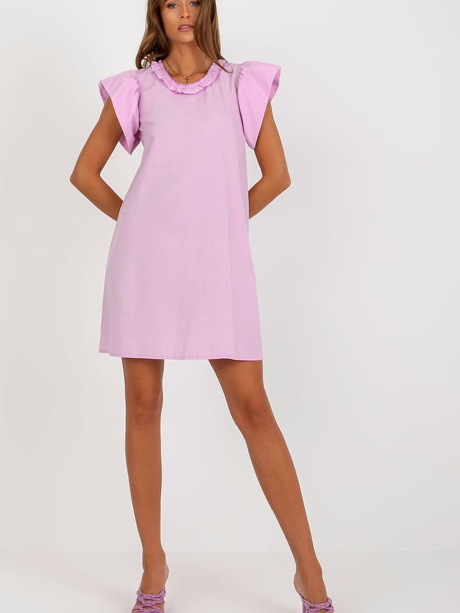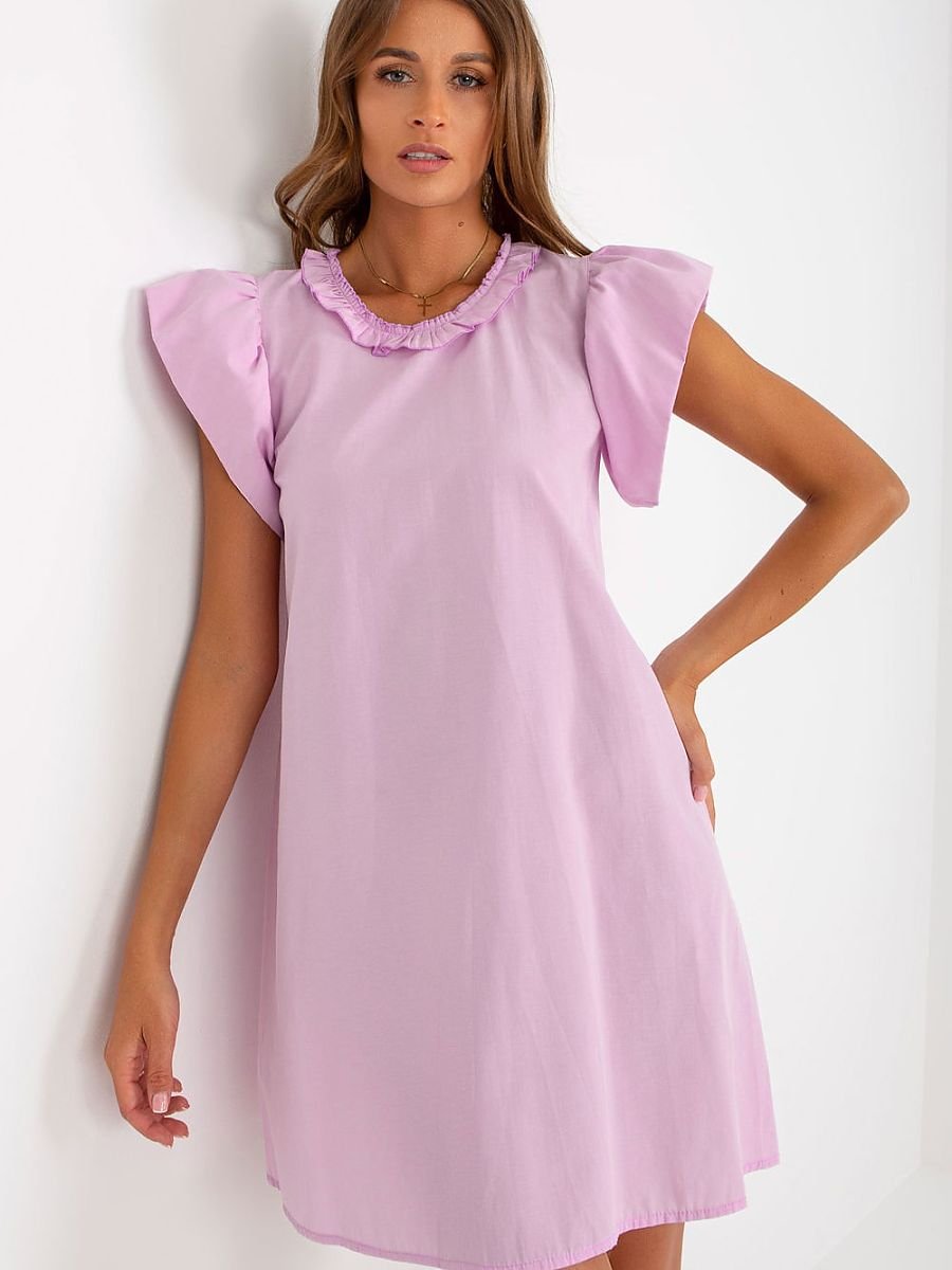 Letnia sukienka o rozkloszowanym fasonie to idealna propozycja na ciepłe dni zarówno na co dzień, jak i do pracy. Wykonana z przewiewnej, dominującej bawełny, zapewnia komfort noszenia i swobodę ruchów przez cały dzień. Model o długości przed kolano prezentuje się kobieco i lekko, a subtelne detale dodają mu uroku. Krótkie rękawy w formie falbanek nadają sukience romantycznego charakteru, a okrągły dekolt wykończony drobną falbanką podkreśla jej delikatny styl. Brak zapięcia sprawia, że sukienka jest niezwykle wygodna i łatwa do założenia. Gładki wzór sprawia, że sukienka jest uniwersalna i łatwa do stylizacji, świetnie komponuje się z lekkimi sandałkami, balerinami czy torebką typu koszyk. To must-have w letniej garderobie każdej kobiety.