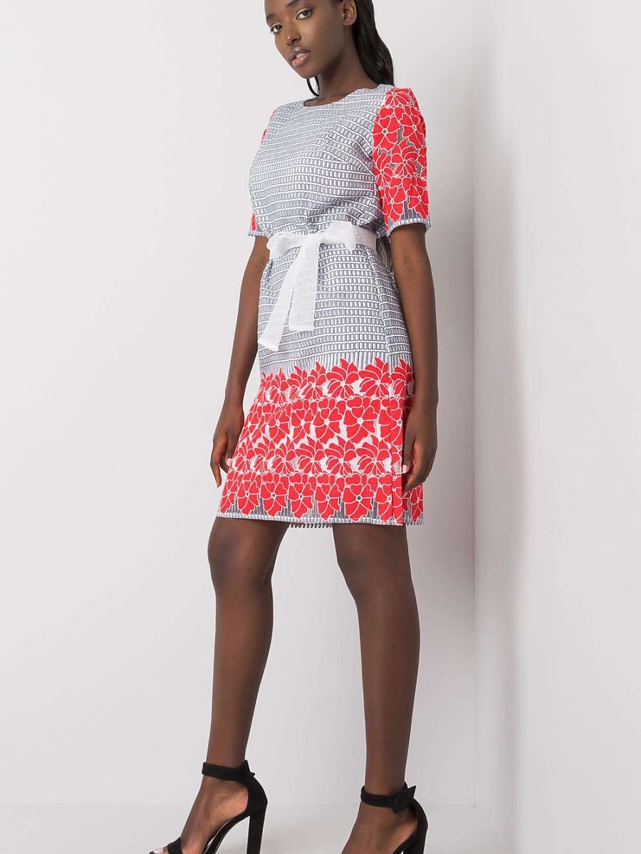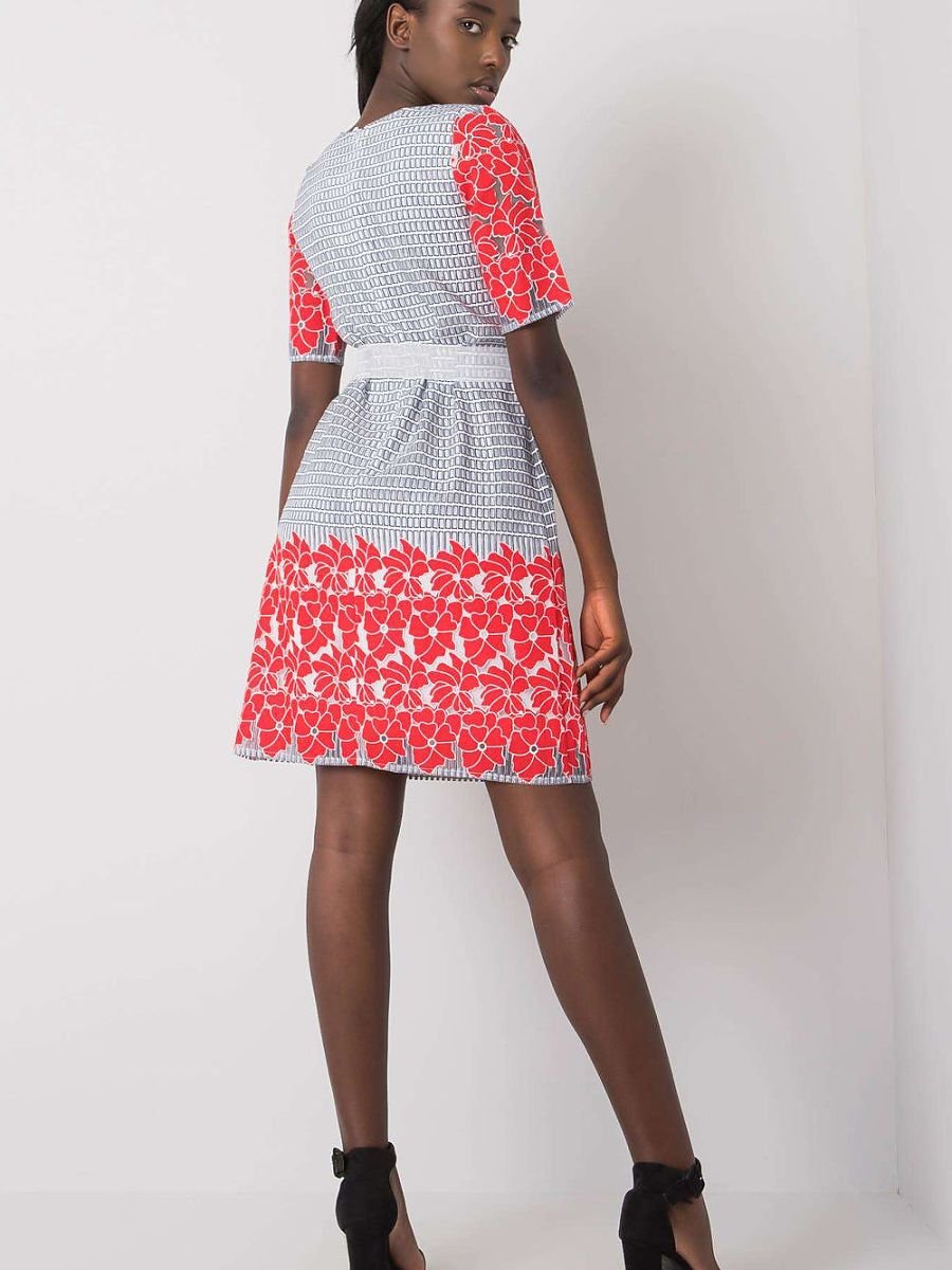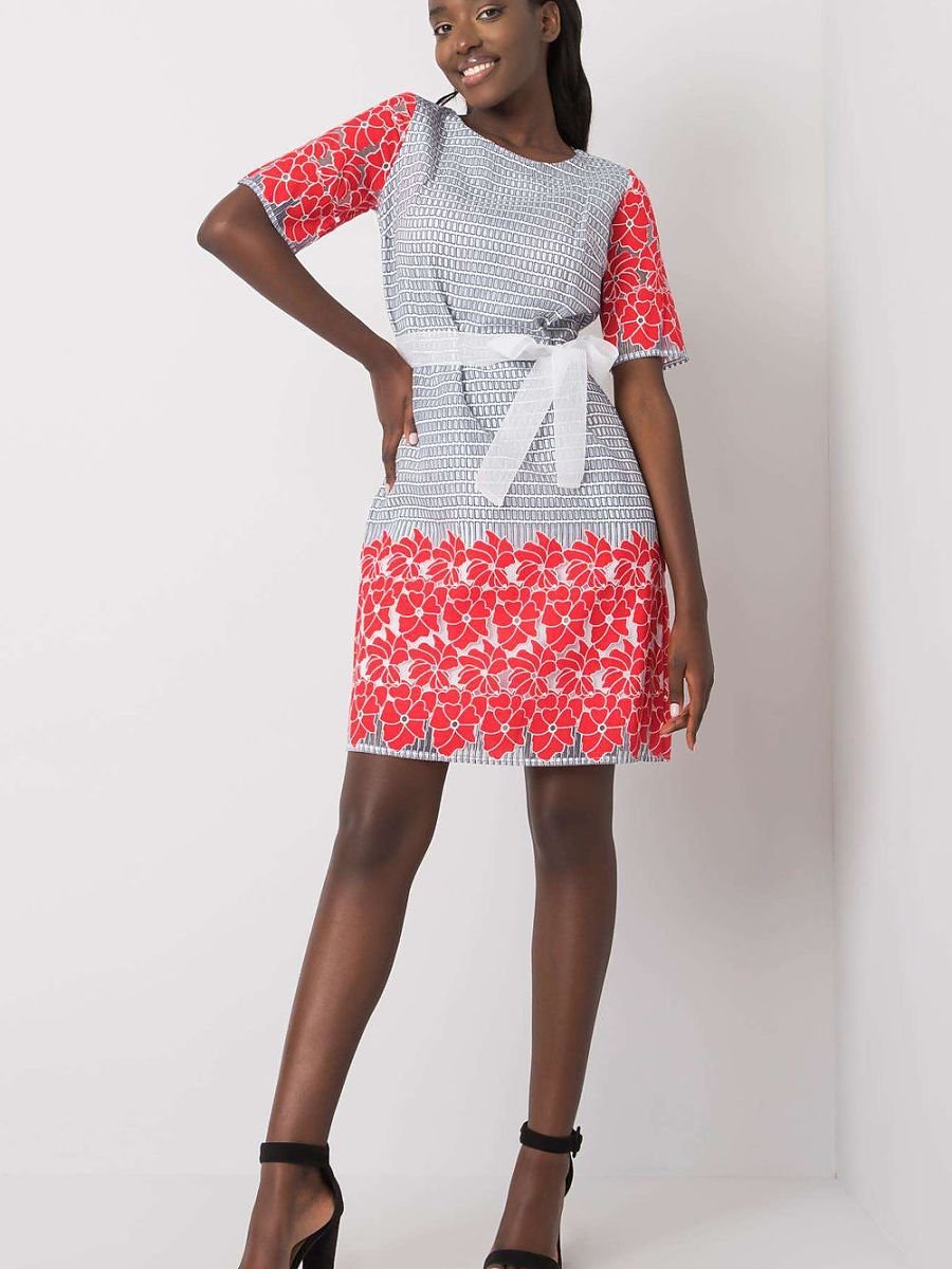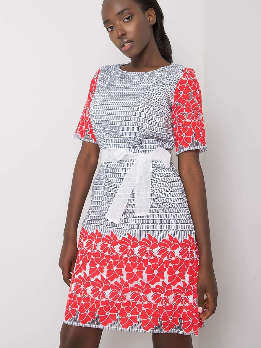 Elegancka sukienka z subtelnym nadrukiem w dolnej części oraz na rękawach to doskonała propozycja na wizytowe okazje i stylowe stylizacje do pracy. Wykonana z dominującego lnu, zapewnia naturalną przewiewność i komfort noszenia, a jednocześnie prezentuje się wyjątkowo szykownie. Model o długości przed kolano z krótkim rękawem i klasycznym, okrągłym dekoltem tworzy zrównoważoną i elegancką sylwetkę. Sukienka została wyposażona w praktyczne zapięcie na kryty zamek, co ułatwia zakładanie i podkreśla estetyczne wykończenie całości. Dodatkowym atutem jest podszewka, która zwiększa komfort i zapobiega prześwitywaniu materiału. Dekoracyjny nadruk dodaje sukience charakteru, zachowując jednocześnie elegancki, stonowany styl. To idealna propozycja dla kobiet ceniących jakość, klasę i subtelne detale.