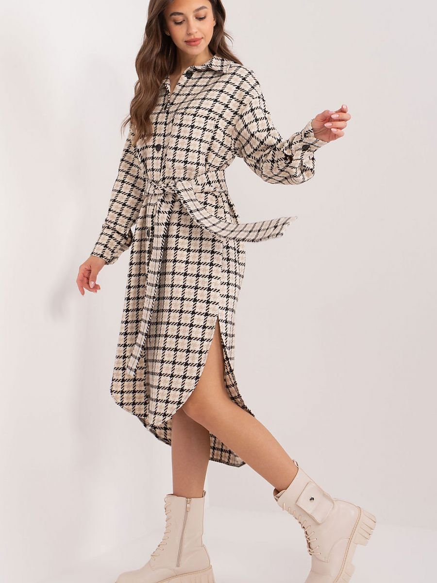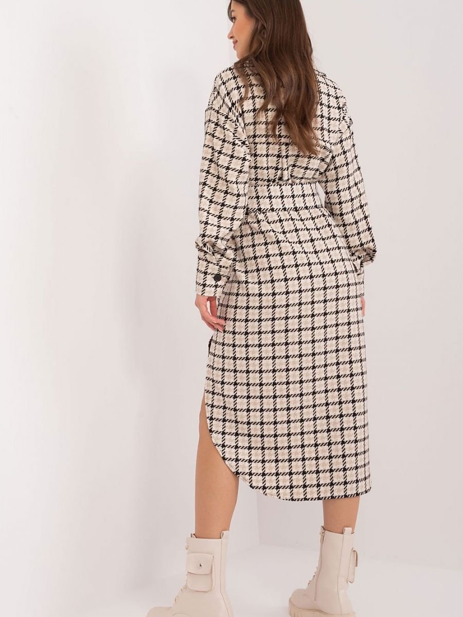 Sukienka codzienna koszulowa to doskonałe połączenie wygody i stylu, idealne na różnorodne okazje, zarówno do pracy, jak i na codzienne wyjścia. Jej asymetryczny fason wyróżnia ją spośród innych, nadając jej oryginalności i lekkości. Wzór dominujący to subtelna kratka, co nadaje sukience casualowego i modnego wyrazu. Materiał dominujący, czyli bawełna, zapewnia przyjemne uczucie na skórze i komfort noszenia, idealny na każdy dzień. Długość midi sprawia, że sukienka jest uniwersalna i odpowiednia dla różnych sylwetek. Długi rękaw oraz kołnierzyk dodają elegancji, tworząc równocześnie komfortowy i casualowy look. Zapięcie na guziki ułatwia zakładanie sukienki, a pasek do wiązania podkreśla talię, dodając kobiecego akcentu. Asymetryczny fason nadaje sukience nieco nonszalancji i nowoczesności, co sprawia, że jest to idealny wybór na codzienne stylizacje. Sukienka koszulowa z kratą to propozycja dla kobiet, które pragną połączyć wygodę z modnym stylem. Doskonale sprawdzi się zarówno w casualowych sytuacjach, jak i podczas pracy, tworząc stylizację pełną swobody i lekkości.
