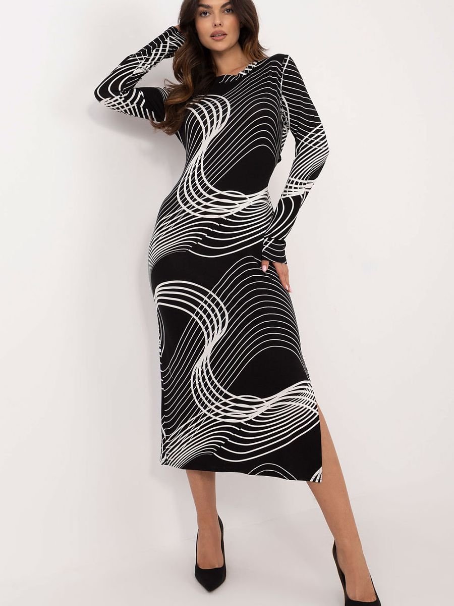 Codzienna sukienka o prostym, ołówkowym fasonie to idealny wybór na co dzień oraz do pracy. Wykonana z przewiewnej wiskozy, zapewnia komfort noszenia przez cały dzień, jednocześnie podkreślając sylwetkę w elegancki sposób. Dominujący wzór nadaje sukience odważnego, modnego charakteru, idealnego dla kobiet ceniących wyrazisty styl. Sukienka o długości midi i z długimi rękawami doskonale sprawdza się w różnych porach roku, zapewniając wygodę i swobodę ruchu. Okrągły dekolt podkreśla szyję, dodając stylizacji prostoty i klasy. Brak zapięcia ułatwia zakładanie sukienki, a gorsetowe wiązanie z tyłu pozwala na dopasowanie i podkreślenie figury. Ta sukienka to doskonała propozycja na codzienne stylizacje, łącząc wygodę z eleganckim, nieco drapieżnym wyglądem, idealnym zarówno do pracy, jak i na nieformalne spotkania.