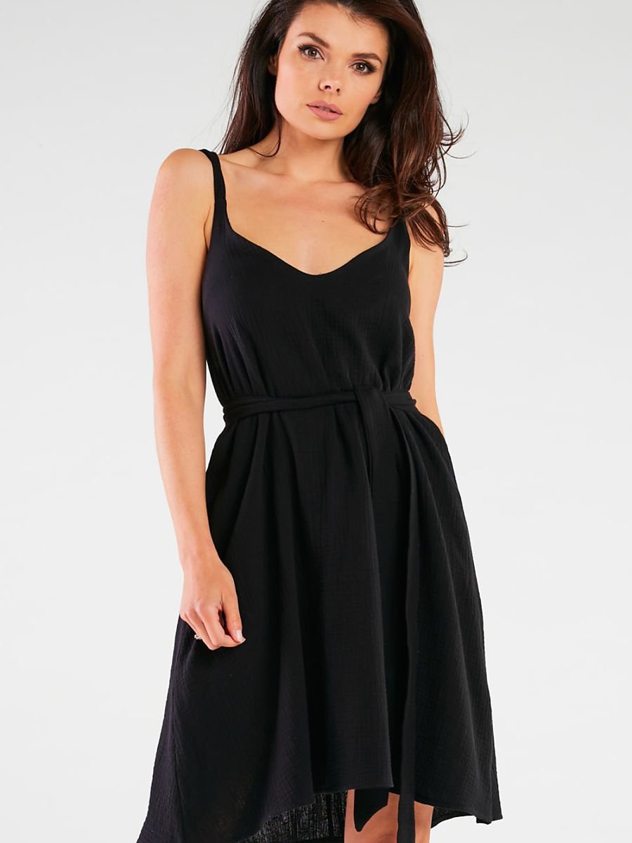 Sukienka wykonana z niezwykle przyjemnego i elastycznego materiału, który jest w stanie zapewnić nieograniczony komfort oraz wygodę noszenia. Model na cienkich ramiączkach i okrągłym dekoltem, rewelacyjnie eksponuję górną partię ciała. Zaprojektowano i uszyto w Polsce.