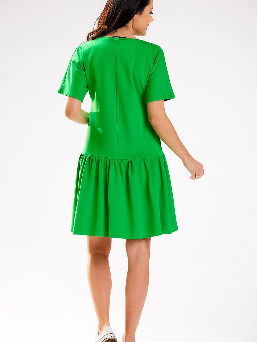 Sukienka w luźnym stylu z krótkim rękawem i falbaną u dołu. Luźny krój zapewni komfort noszenia w ciepłe dni a piękne kolory idealnie pasują do każdego odcienia skóry i rodzaju urody, zapewniając perfekcyjny wygląd w każdej sytuacji. Świetnie sprawdzi się zarówno do letnich sandałek jak i do trampek. Zaprojektowano i uszyto w Polsce.