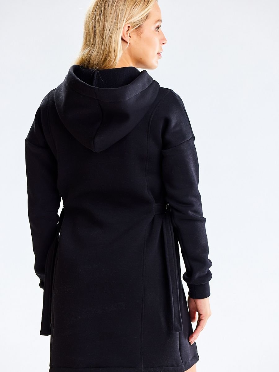 Sukienka z kapturem oraz długim rękawem. Po bokach regulowana szerokość. Propozycja idealna na co dzień i nie tylko. Zaprojektowano i uszyto w Polsce.