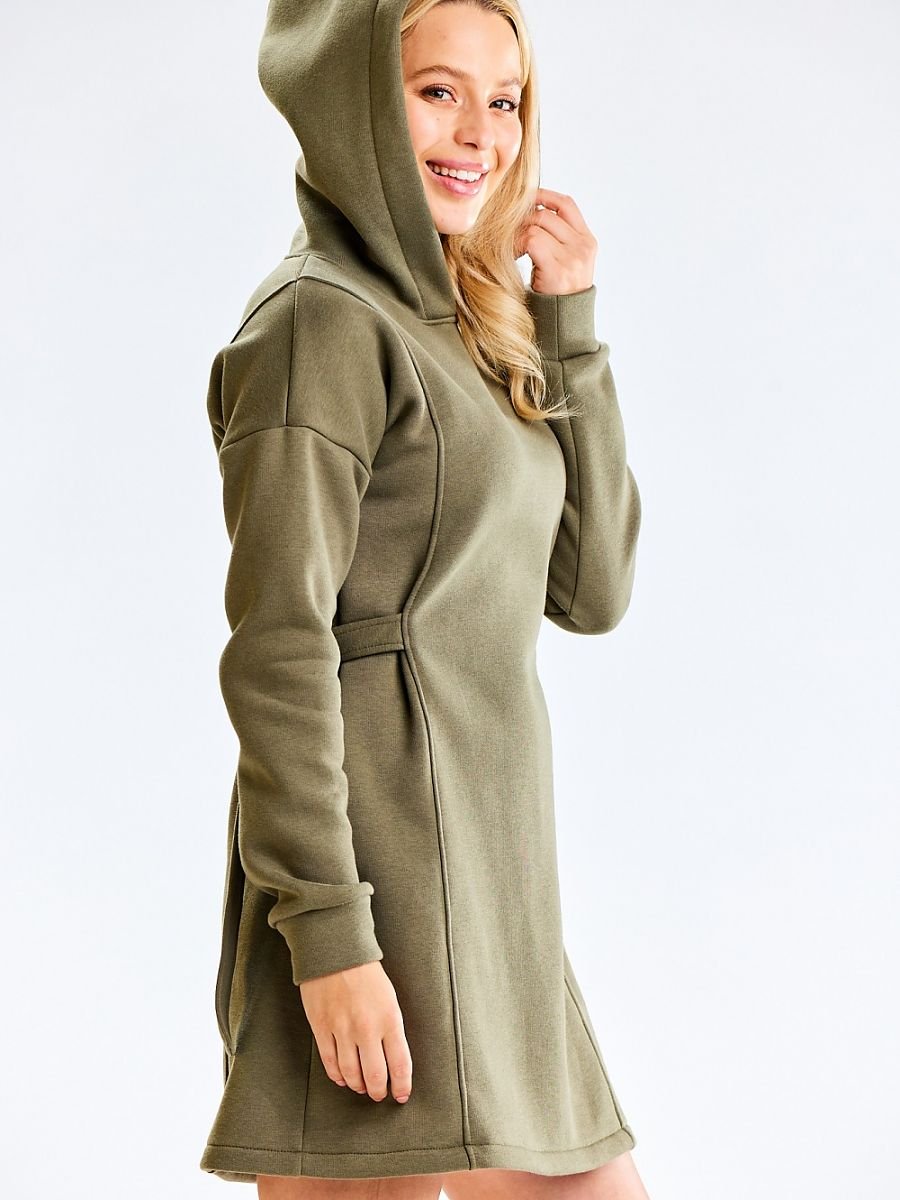 Sukienka z kapturem oraz długim rękawem. Po bokach regulowana szerokość. Propozycja idealna na co dzień i nie tylko. Zaprojektowano i uszyto w Polsce.