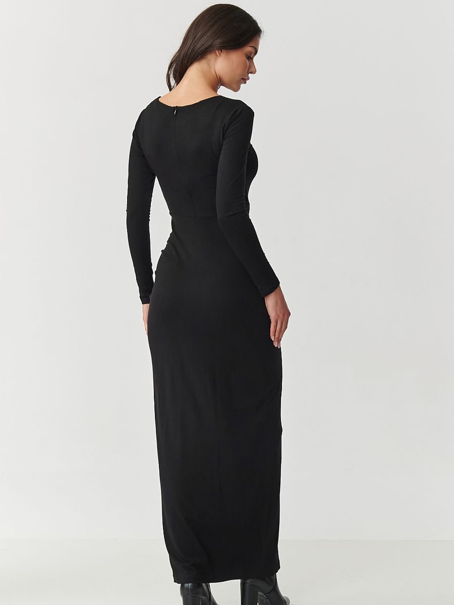 Sukienka maxi z długim rękawem to kwintesencja kobiecości i elegancji, stworzona z myślą o kobietach, które lubią podkreślać swoje atuty i czuć się wyjątkowo w każdej sytuacji. Wykonana z elastycznego, przyjemnego w dotyku materiału, doskonale dopasowuje się do sylwetki, zapewniając nie tylko wygodę, ale także perfekcyjny wygląd przez cały wieczór. Największym atutem tej sukienki jest efektowne marszczenie w talii, które optycznie wysmukla sylwetkę, podkreśla kobiece kształty i jednocześnie maskuje drobne niedoskonałości. Dzięki temu każda kobieta poczuje się w niej pewnie i atrakcyjnie. Długość maxi dodaje kreacji klasy oraz sprawia, że całość prezentuje się niezwykle stylowo i szykownie. Uniwersalny krój pozwala na łatwe dopasowanie dodatków, sukienka świetnie wygląda zarówno w połączeniu z klasycznymi szpilkami, jak i z nowoczesnymi botkami czy sandałkami na obcasie. Możesz ją zestawić z delikatną biżuterią, aby uzyskać subtelny efekt, lub z bardziej wyrazistymi akcesoriami, jeśli chcesz stworzyć mocniejszy, wieczorowy look. Sprawdzi się podczas rodzinnych spotkań czy świątecznych przyjęć, kiedy chcesz wyglądać wyjątkowo i czuć się pewnie. Elegancka sukienka maxi z marszczeniem to synonim kobiecości i ponadczasowej klasy. Jeśli szukasz kreacji, która podkreśli Twoją sylwetkę, doda Ci pewności siebie i będzie odpowiednia na wiele okazji ten model to doskonały wybór.
