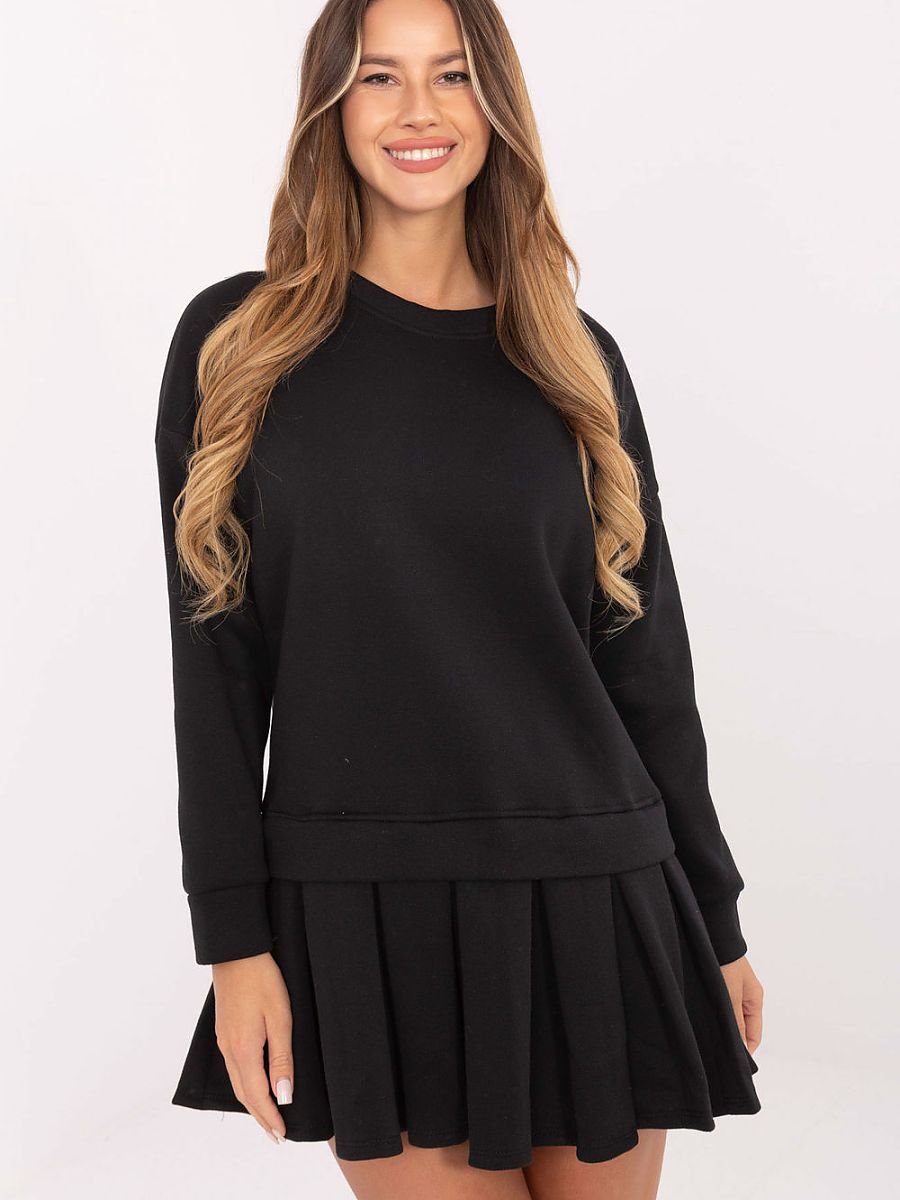 Ta dresowa sukienka damska łączy w sobie wygodę i kobiecy styl, idealna na codzienne okazje. Wykonana z miękkiej bawełny z dodatkiem elastanu, zapewnia komfort noszenia, elastyczność i przyjemne dopasowanie do sylwetki. Model ma okrągły dekolt, długie rękawy oraz rozkloszowany fason, który pięknie układa się w ruchu. Plisowany dół sukienki dodaje lekkości i subtelnej elegancji, a ocieplenie sprawia, że świetnie sprawdzi się w chłodniejsze dni. Sukienka mini, bez dodatkowego zapięcia, jest praktyczna i łatwa do zakładania, a jej gładki wzór pozwala na tworzenie wielu stylizacji, od codziennych po bardziej casualowe wyjścia. Mogę też przygotować krótszą, sprzedażową wersję opisu do sklepu internetowego, jeśli chcesz.