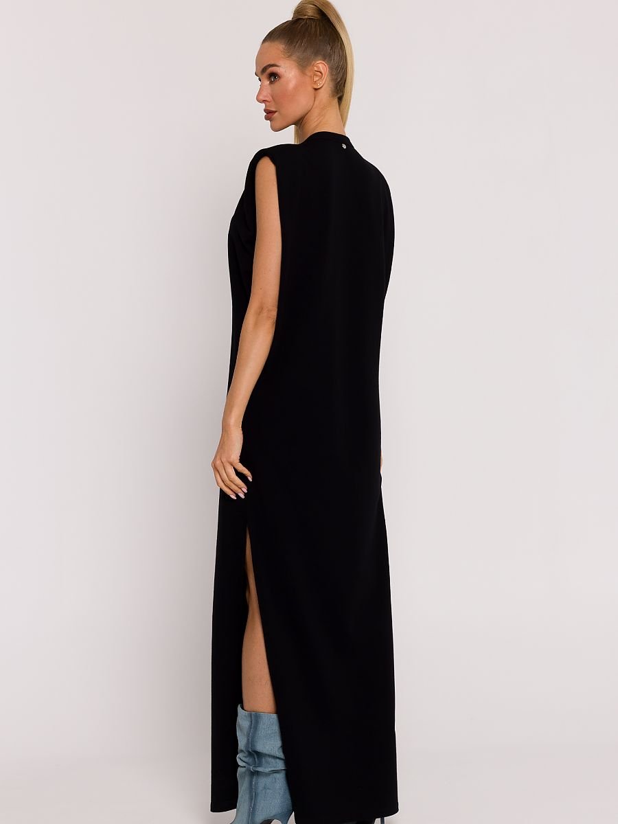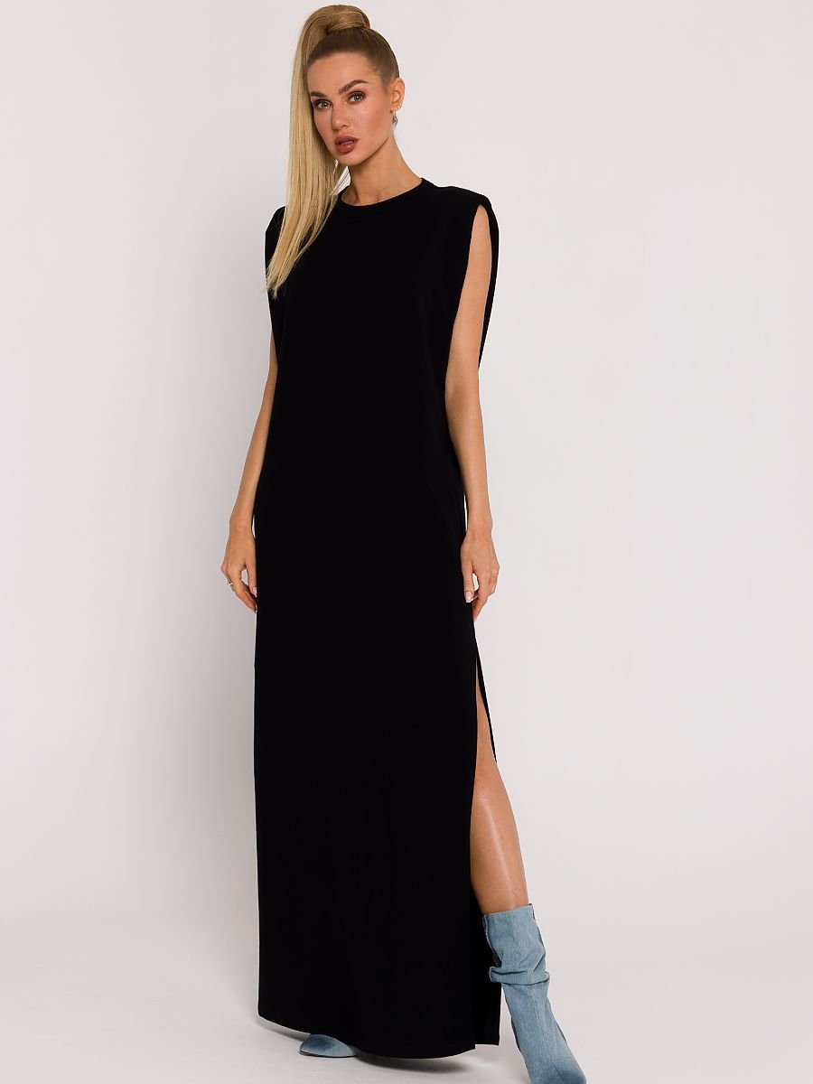 Ta sukienka z dzianiny to wyraz luksusu i wyjątkowej polskiej krawiectwa, gdzie dbałość o detale i wygodę spotykają się w jednym projekcie. Zaprojektowana i uszyta w Polsce, reprezentuje unikalny styl i komfort noszenia. Sukienka typu oversize jest doskonałą propozycją dla kobiet, które cenią sobie swobodę ruchu, nie rezygnując jednocześnie z elegancji. Jej fason, zakładany przez głowę, sprawia, że noszenie jej staje się niezwykle łatwe i komfortowe. Rozcięcie na boku dodaje sukience lekkości i subtelnej zmysłowości. Bezrękawnikowy design sukienki, wsparty poduszkami na ramionach, nadaje całej stylizacji nowoczesności i unikalnego charakteru. Poduszki na ramionach dodają struktury, podkreślając jednocześnie wyjątkowy kształt sukienki. Długość maxi sprawia, że sukienka nadaje się zarówno na eleganckie wyjścia, jak i na bardziej casualowe okazje. Dekoracyjna logowana blaszka umieszczona z tyłu to nie tylko element designerski, ale również subtelny akcent wzbogacający cały projekt. Staranne wykonanie blaszki podkreśla wysoką jakość sukienki. Dodatkowo, brak podszewki sprawia, że sukienka jest przewiewna i lekka, idealna na cieplejsze dni. Ta sukienka z dzianiny to nie tylko ubranie, ale wyraz polskiej tradycji krawieckiej, łączący w sobie elegancję, komfort i unikalny design. Idealna dla kobiet, które pragną wyrazić siebie poprzez modę, podkreślając swój indywidualny styl.