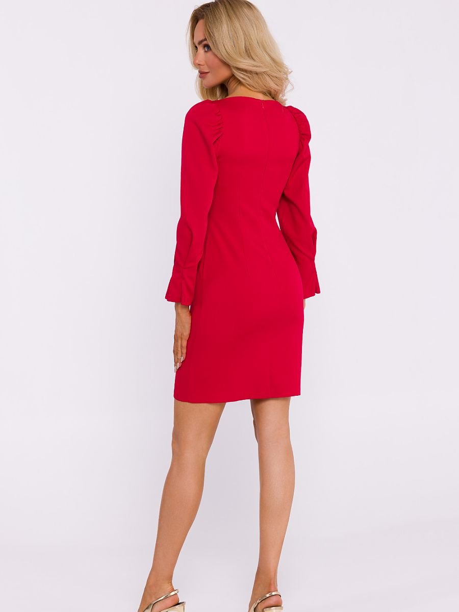 Urocza mini sukienka wykonana z wysokiej jakości tkaniny, idealna na wyjątkowe okazje. Odcinana pod biustem, podkreśla kobiecą sylwetkę, a głęboki kwadratowy dekolt dodaje jej oryginalnego charakteru i subtelnie eksponuje dekolt. Sukienka posiada długie rękawy z delikatnymi bufkami na ramionach, które dodają objętości, oraz zaszewki na dole, zapewniające doskonałe dopasowanie. Z tyłu kryty zamek umożliwia wygodne zakładanie i idealne przyleganie do ciała. Sukienka jest lekka, bez podszewki. Zaprojektowana i uszyta w Polsce, stanowi kwintesencję elegancji i kobiecego wdzięku.