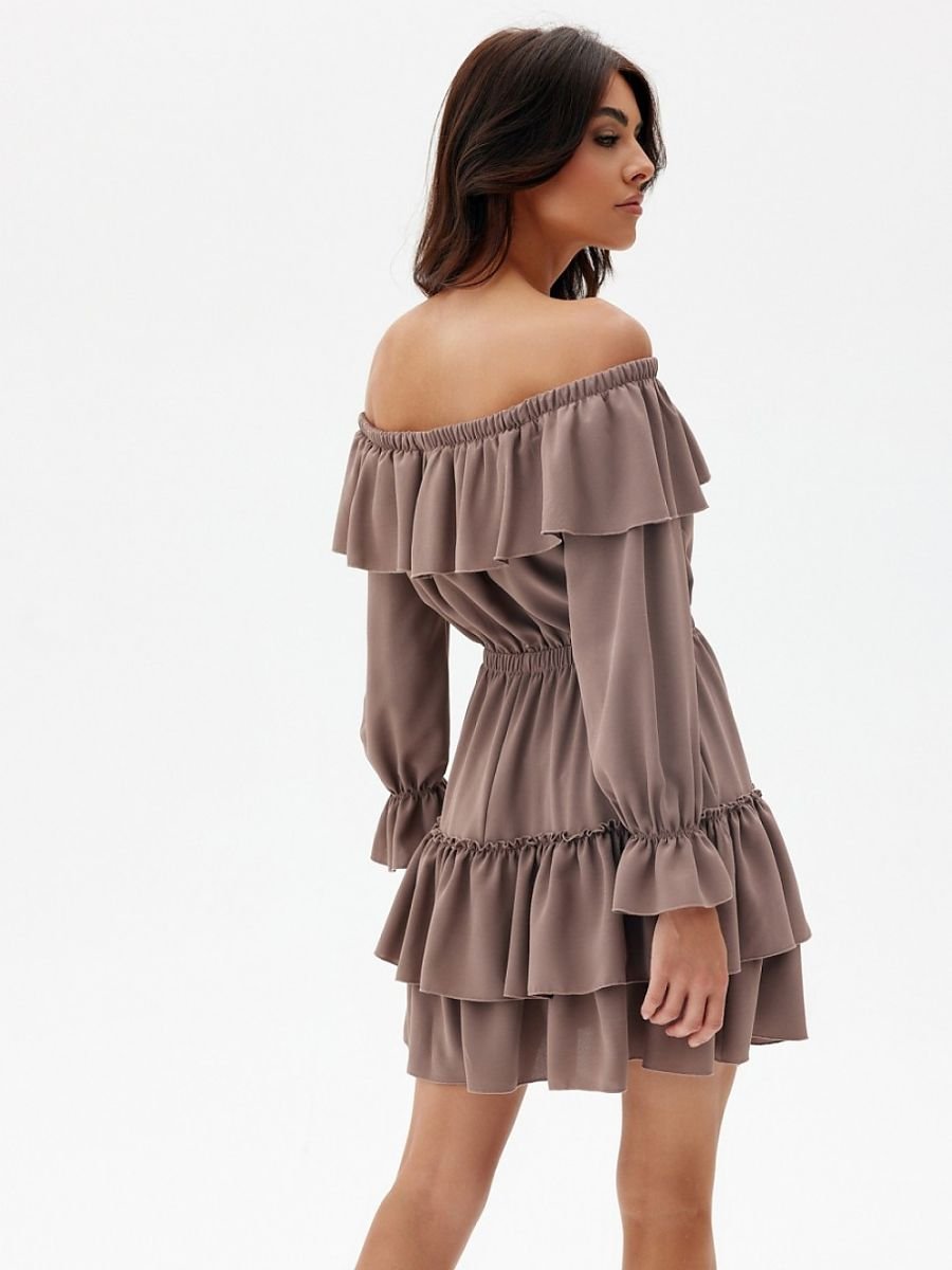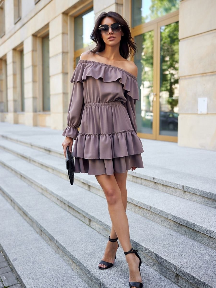 Sukienka mini w stylu hiszpańskim wykonana z przyjemnego materiału wysokiej jakości, dostępna w kilku wariantach kolorystycznych. W górnej części sukienki została wszyta gumka, która pozwala na dopasowanie wysokości dekoltu według preferencji. Można ją nosić klasycznie na ramionach lub jako hiszpankę. Sukienka Morella wyróżnia się uroczymi falbanami przy dekolcie, rękawach oraz na dole spódnicy, które dodają jej uroku. Dół sukienki z delikatnie rozkloszowaną spódnicą z falbanami. W pasie zastosowano elastyczną gumkę, która pozwala na idealne dopasowanie do sylwetki oraz doskonale akcentuje sylwetkę w talii. Sukienkę możesz wykorzystać na wiele okazji, zarówno na wyjścia nieco bardziej formalne, jak i codzienne. Uniwersalność sukienki umożliwia dobranie do niej różnorodnych dodatków. Sportowe obuwie, wysokie kozaki, klasyczne botki lub wysokie obcasy – każdy rodzaj obuwia będzie fantastycznie komponował się z krojem sukienki Morella. Produkt jest wyprodukowany i uszyty w Polsce.