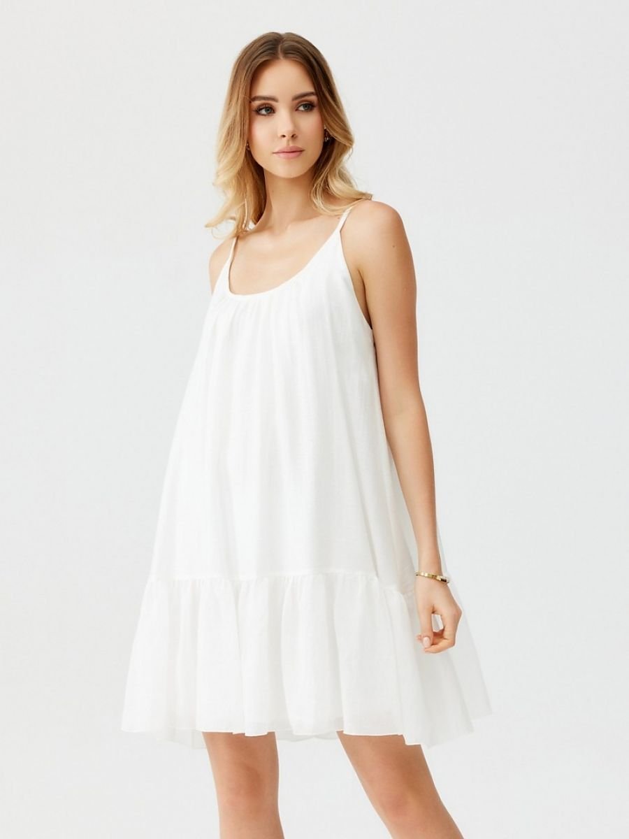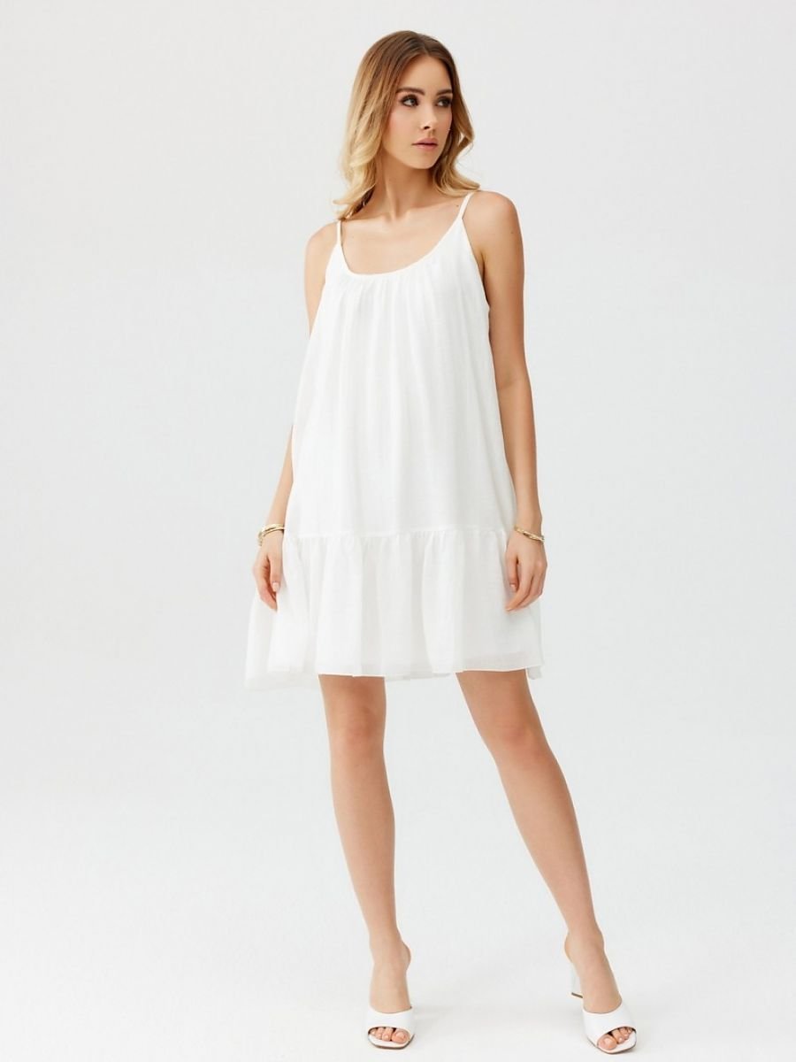 Seville to komfortowy model z naszej letniej kolekcji sukienek. Fason na ramiączkach będzie odpowiedni na upalne dni. Swobodny krój oversize zapewnia komfort i wygodę noszenia. Urocza falbanka na dole dodaje dziewczęcości i nadaje nowoczesny kształt. Sukienka została wykonana z przyjemnego materiału, który będzie przyjemny w użytkowaniu nawet podczas wysokich temperatur. Sukienka posiada podszewkę, która zabezpiecza przed prześwitywaniem. Sukienka może być stylizowana w wersji casual w zestawieniu z wygodnym, sportowym obuwiem i małym plecakiem. Dobierając do niej wysokie sandały na słupku i małą torebkę na łańcuszku stworzysz elegancki look odpowiedni na uroczyste wydarzenia, takie jak letnie imprezy w ogrodzie, urodziny, komunie oraz chrzciny. Produkt jest wyprodukowany i uszyty w Polsce.