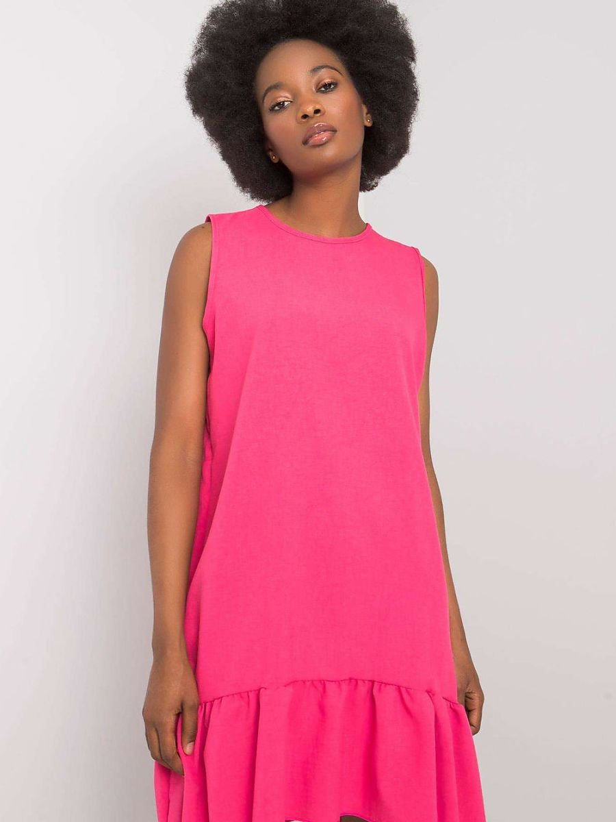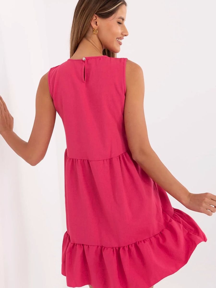 Uniwersalna sukienka o casualowym charakterze to stylowa propozycja na co dzień, do pracy, a także na letnie przyjęcia czy wesele. Wykonana z gładkiego materiału, zachwyca prostotą i kobiecym wykończeniem. Model bez rękawów z klasycznym, okrągłym dekoltem subtelnie podkreśla linię ramion, a długość mini dodaje lekkości i świeżości. U dołu sukienka wykończona jest efektowną falbaną, która wprowadza romantyczny akcent i nadaje całości zwiewności. To idealny wybór dla kobiet ceniących wygodę i elegancję w codziennym wydaniu.