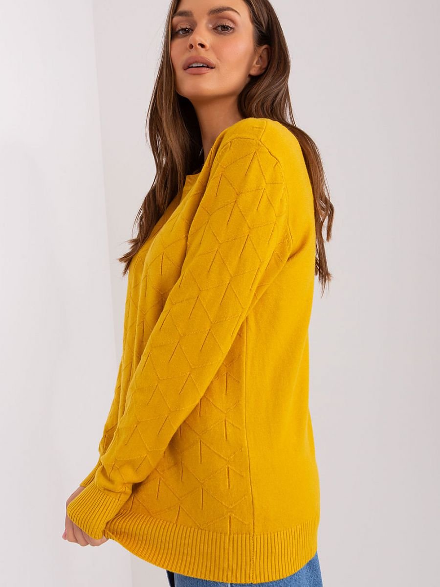 Ten damski sweter to idealny wybór na co dzień. Jego urozmaicona faktura materiału i subtelny wzór sprawiają, że prezentuje się wyjątkowo atrakcyjnie. Sweter wykonany jest głównie z miękkiej i przyjemnej w dotyku bawełny, co gwarantuje komfort noszenia przez cały dzień. Długi rękaw zapewni Ci ciepło w chłodniejsze dni, a okrągły dekolt nadaje mu uniwersalności. Standardowa długość tego swetra sprawia, że pasuje zarówno do spodni, jak i spódnic, co czyni go wszechstronnym elementem garderoby. Możesz go nosić na wiele różnych okazji, od codziennych spotkań po wyjścia na miasto. Ten sweter jest nie tylko wygodny, ale także modny, dzięki czemu możesz czuć się dobrze i prezentować stylowo w każdym momencie dnia.