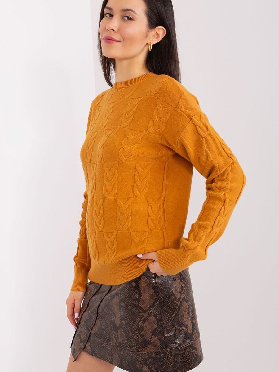 Damski sweter wkładany przez głowę to doskonały wybór na co dzień. Klasyczny okrągły dekolt i długie rękawy zapewniają komfort oraz uniwersalny styl. Model wyróżnia się dominującym wzorem oraz urozmaiconą fakturą materiału, co dodaje mu wyjątkowego charakteru. Wykonany z wysokiej jakości mieszanki wiskozy, nylonu i PBT, jest miękki, elastyczny i przyjemny w dotyku. Idealny do casualowych stylizacji, świetnie sprawdzi się zarówno z jeansami, jak i eleganckimi spodniami.