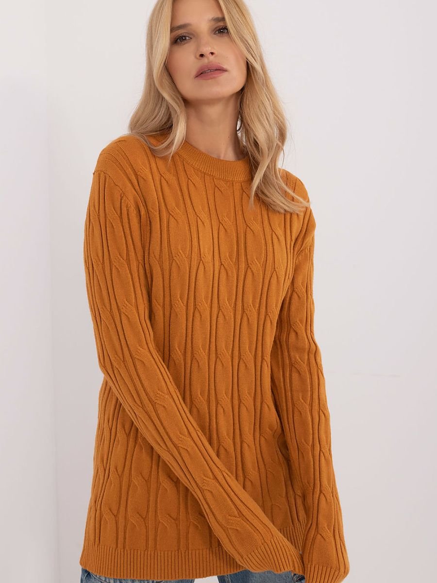 Damski sweter w stylu casual to idealny wybór na co dzień, łączący komfort z modnym wyglądem. Wykonany z mieszanki wiskozy, nylonu i PBT, oferuje miękkość, elastyczność oraz trwałość. Sweter ma standardową długość i długie rękawy, co sprawia, że jest doskonały na chłodniejsze dni. Urozmaicona faktura materiału dodaje swetrowi charakteru, czyniąc go nie tylko praktycznym, ale i stylowym elementem garderoby. Okrągły dekolt nadaje mu klasyczny wygląd, który świetnie komponuje się z codziennymi stylizacjami. To wszechstronny sweter, który z łatwością dopasuje się do różnych outfitów, zapewniając wygodę i elegancję na co dzień.