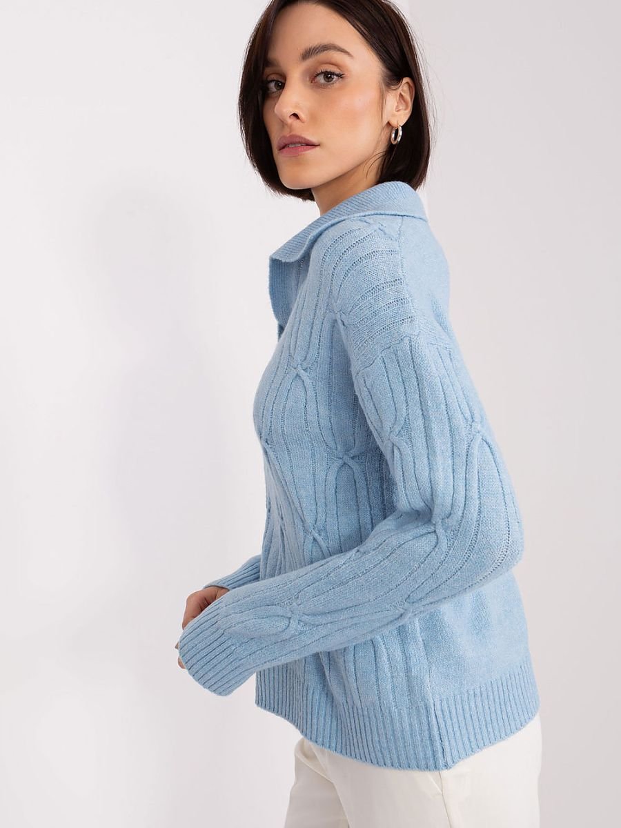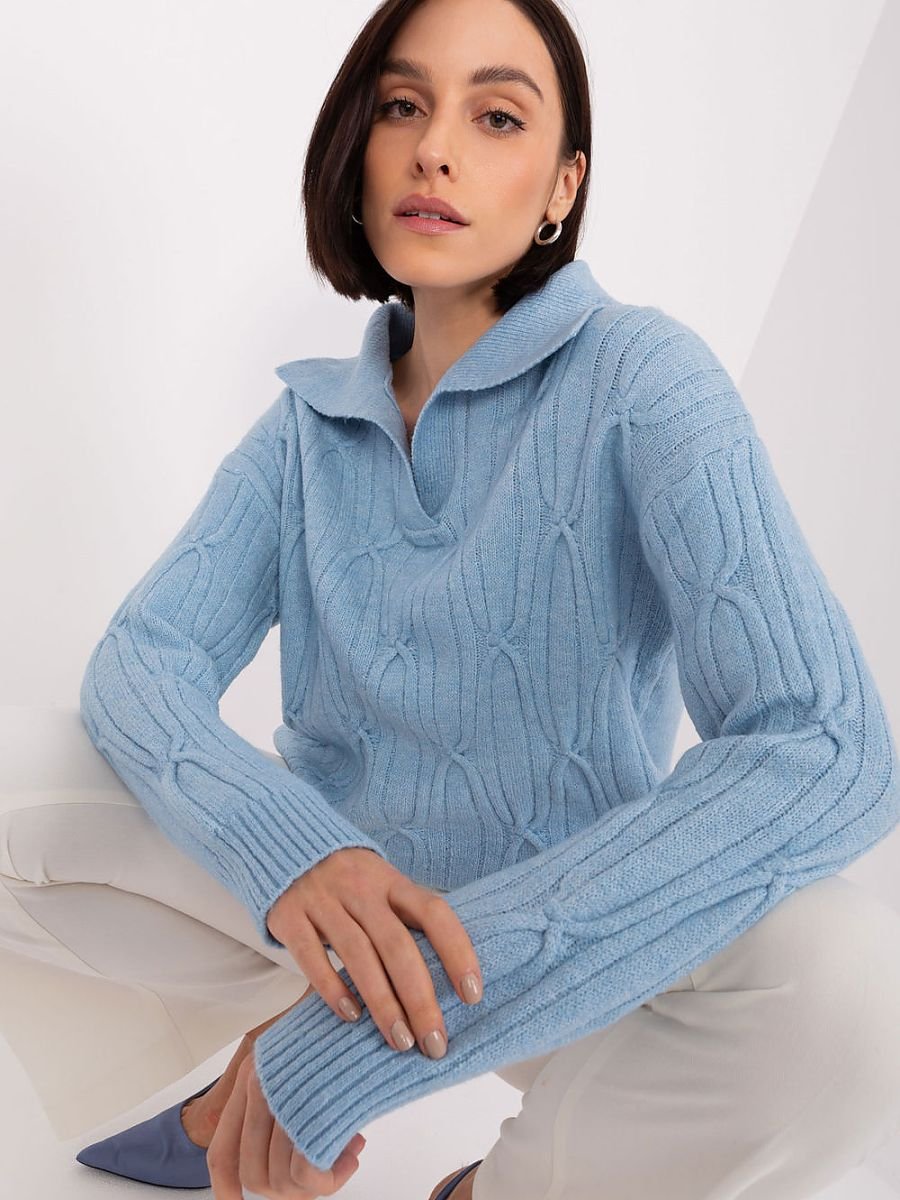 Ten sweter damski to doskonały wybór na różne okazje, od codziennych sytuacji po dni w biurze. Wykonany z przyjemnego w dotyku akrylu, gwarantuje komfort noszenia. Jego urozmaicona faktura materiału dodaje mu charakteru, a subtelnego wzoru dominującego sprawia, że jest elegancki, ale jednocześnie pasuje do stylu casual. Długi rękaw zapewnia ciepło, a standardowa długość nadaje mu uniwersalności. Kołnierzyk dodaje mu klasy i elegancji. To sweter, który z łatwością dopasujesz do wielu różnych stylizacji, pozwalając Ci wyglądać stylowo i czuć się komfortowo.
